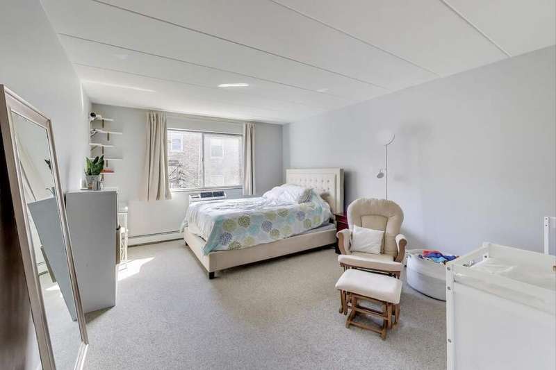 Oversized 1 bedroom 1 bath in Absolutely A+ Central Oak Park near everything location. Elevator building with very well managed condo association. Spacious living room dining room space allows for options for desk or work out area. Bedroom space is large enough to handle a sitting area or another desk space. 1 exterior parking space. Large rooms and great closet space. Coin laundry and storage unit.