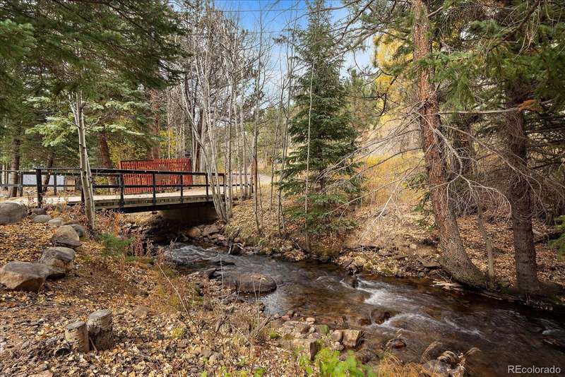 PRICE REDUCTION ON THIS EXTRAORDINARY ONE-OF-A-KIND HOME. This is not hyperbole - This 3-acre estate was a historic hydroelectric plant meticulously refurbished into a stunning riverfront home. It is an unparalleled living experience with a touch of history and the comfort of modern luxury. Situated between the gently cascading Fall River and the Arapaho National Forest, privacy and ease are the hallmarks of this home. I-70 is less than 3 miles away creating the ideal location between Summit County ski resorts, Denver's dining and entertainment amenities, and DIA. The centerpiece of a custom chef's dream kitchen features a 12-foot Italian granite island, perfect for entertaining while cooking. A Wolf range and double ovens, and Sub Zero refrigeration and freezer appliances complete the essentials. A large pantry, copper prep sinks, coffee nook and custom cabinetry reflect the thoughtful design and beauty found throughout this home. The acid-stained concrete floors resemble rich leather and an efficient Russian stone fireplace and bread oven blend the cozy ambiance of the open floor plan. Tall barn doors open to a spacious outdoor patio with a dedicated propane line for the grill, an automatic whole house generator, and new hot tub. A fenced backyard with a large covered dog run is a pet's dream. The primary suite features programmable skylights and adjoins a bonus room - an exercise room, den, or a second office. A detached heated studio adds versatility, offering a creative space for your imagination or easily converted back to a 2-car garage. Completing the outdoor amenities is a fairy play garden, picnic area, greenhouse, and extra storage. The 18-inch thick walls, custom Hunter Douglas electric blinds and radiant floor heat creates a luxurious and energy-efficient environment. This home is where history and modernity converge offering a Colorado lifestyle that is truly unique.