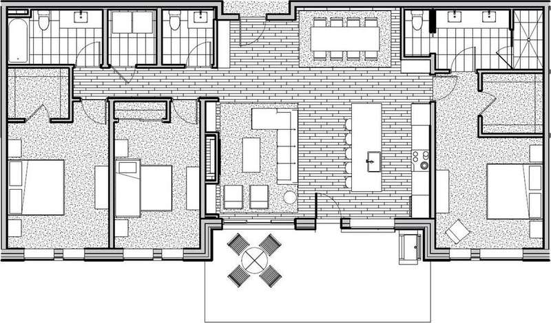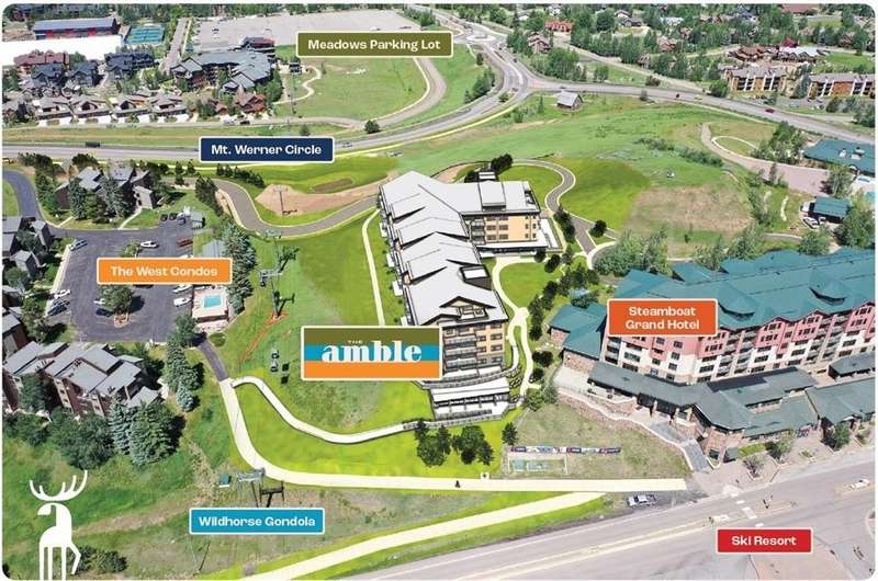 The Amble is a new, all-electric, residential community located steps to Steamboat Resort’s front door, with shopping, dining, and alpine trails nearby. Steamboat Resort recently completed over $200m in improvements at the resort, and The Amble will be the first new property built at the base area in nearly 15 years. Efficient and sustainable building design makes the time spent indoors just as inspiring as the time spent outdoors. Every element in the residence serves a purpose to create experiential spaces tailored for the needs of modern outdoor families during their indoor moments. Onsite amenities at The Amble include an outdoor heated pool and hot tub, game room and guest lounge, fitness center, secure owner storage, underground parking garage with EV charging, and spacious ski & snowboard lockers in The Den. Residence #106 is a first-floor residence with southern perspectives and a walkout patio. The open, flowing great room seamlessly melds the kitchen, dining and living spaces. This home features efficient triple-pane windows throughout, and an all-electric water vapor fireplace in the living area adds year-round ambience and optional heating. The kitchen features an induction cooktop, wall oven, and island sink. A spacious outdoor patio is adjacent to the great room and wired for an electric grill. The large primary suite includes a walk-in closet and ensuite bath. There are two additional bedrooms and one more full bathroom plus a powder bath, along with a laundry room with full-size side-by-side washer and dryer.