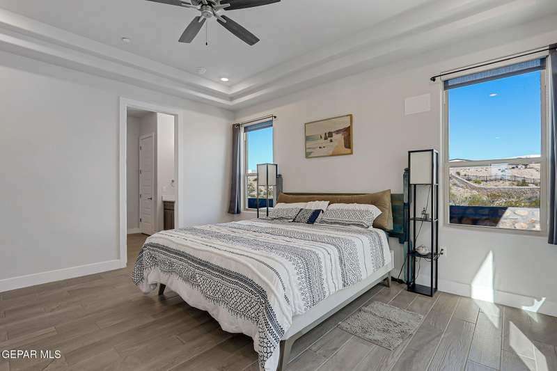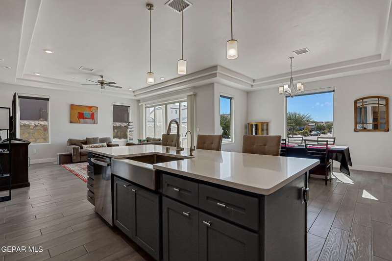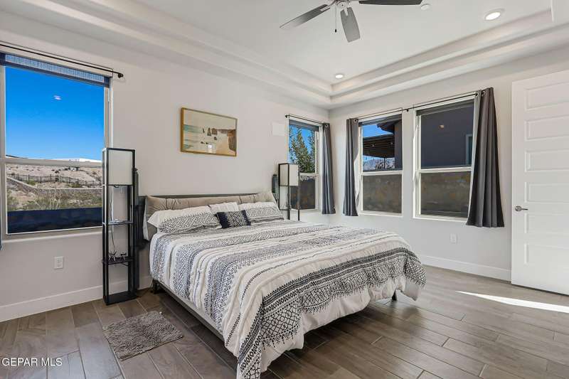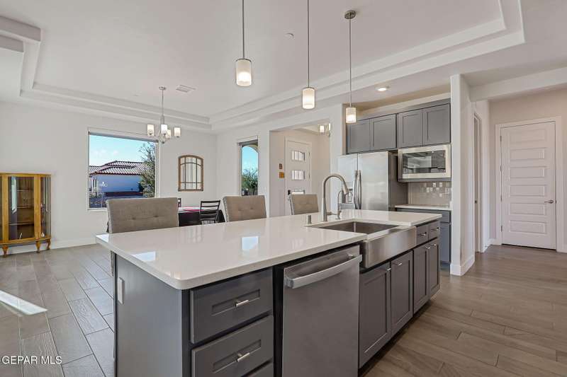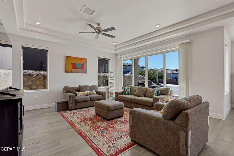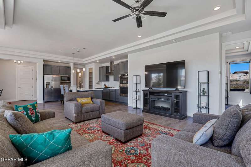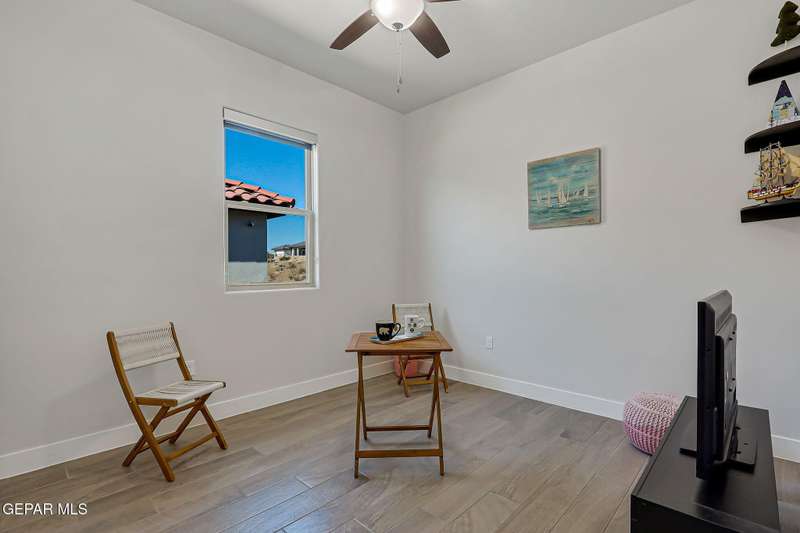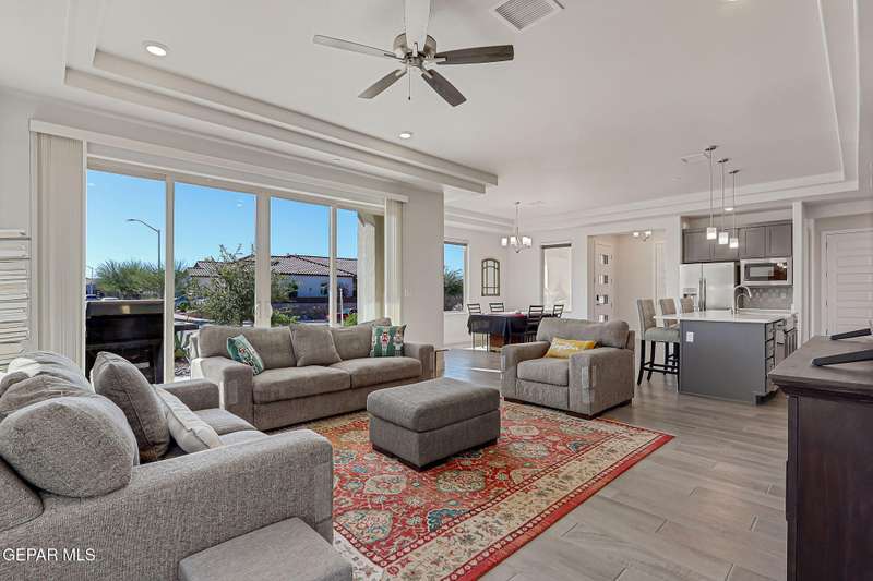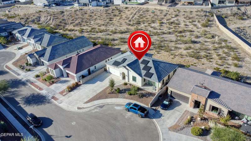 Beautiful home located in a gated community with stunning mountain views. This open-concept floor plan offers 2 spacious bedrooms and a flexible area perfect for an office or study. The large driveway provides extra parking.The home includes solar panels. Cozy and luxury finishes distinguish this well-appointed home, designed with comfort and elegance in mind. The Owner's suite is privately zoned from the secondary bedroom, creating a peaceful retreat. Residents can enjoy the community's pickleball court and walking trails any day, adding a fun and active lifestyle option.