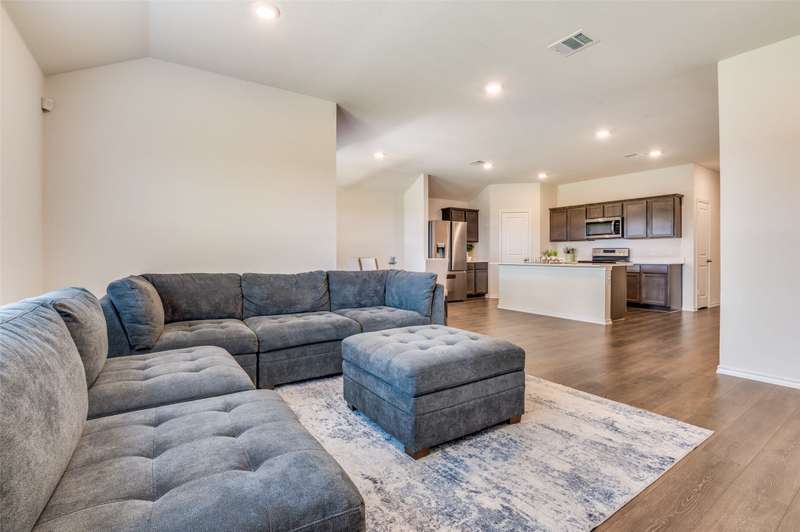 Welcome to this beautifully maintained home located in the beautiful Bear Creek Ranch community of Lancaster, offering a perfect blend of comfort, style, and convenience. This four-bedroom, two-bath residence features an open-concept layout designed for both everyday living and entertaining. The kitchen serves as the heart of the home, featuring a generous island topped with quartz countertops and a roomy pantry for all of your storage needs. Laminate flooring flows seamlessly through the main living areas, creating a warm and inviting atmosphere. The primary suite offers a private retreat with a large shower and a large walk-in closet. The three additional bedrooms provide plenty of flexibility for guest rooms, a home office, or hobbies-each with large closets for ample storage. Step outside to enjoy a covered back porch overlooking your private backyardideal for relaxing or hosting gatherings. Bear Creek Ranch offers an exceptional lifestyle with amenities that include walking trails, a hiking path, community swimming pool, and playgrounds. The neighborhood is designed for outdoor enjoyment and connection with neighbors, while still offering a sense of privacy and space. With an additional phase of the community now underway, you can enjoy the benefits of a recently built home without the wait or the challenges of nearby construction. If youre seeking a home thats move-in ready, thoughtfully designed, and located in a vibrant community, this Bear Creek Ranch gem is ready to welcome you. Be sure to inquire with the seller's agent about SPECIAL FINANCING-ZERO DOWN-NO PMI, $6500 LENDER GRANT(REQUIREMENTS TO QUALIFY), $895 LENDER FEES WAIVED & 30 YEAR FIXED RATE AS LOW AS 5.8%.