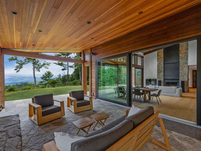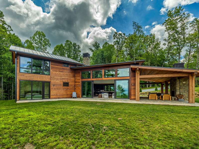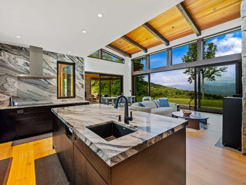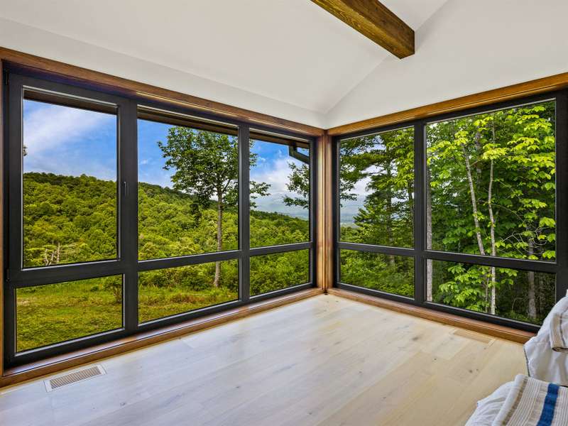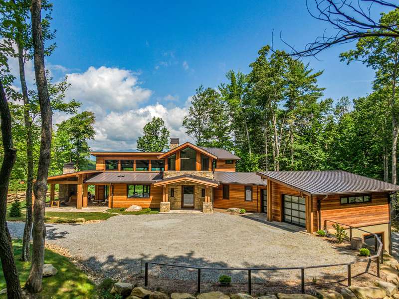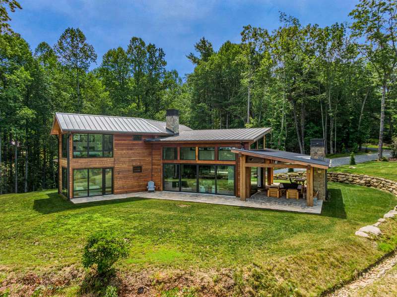 One of Brevard's most exceptional view homes, this European-inspired modern rustic retreat by Platt Architecture sits on 4+ wooded acres in Eagle Lake, just 12 minutes from downtown. Enjoy year-round Blue Ridge Mountain views?including a stunning view of Cedar Rock in Pisgah National Forest?and easy access to a private 30-acre high-elevation lake. Premium finishes include K?mmerling steel-frame windows and doors, imported European White Oak floors, handcrafted Walnut cabinetry and trim, and floating stairs. The exterior features durable and elegant Brazilian Ipe siding. Geothermal HVAC with humidifier and fresh air intake ensures year-round comfort. The open floor plan flows effortlessly onto a spacious covered porch with a wood-burning fireplace and a level yard?perfect for outdoor entertaining or play. A branch of Philips Creek meanders through the property, including a lower-level over sized garage/ workshop. Crafted with care, this home offers refined mountain living at its finest.