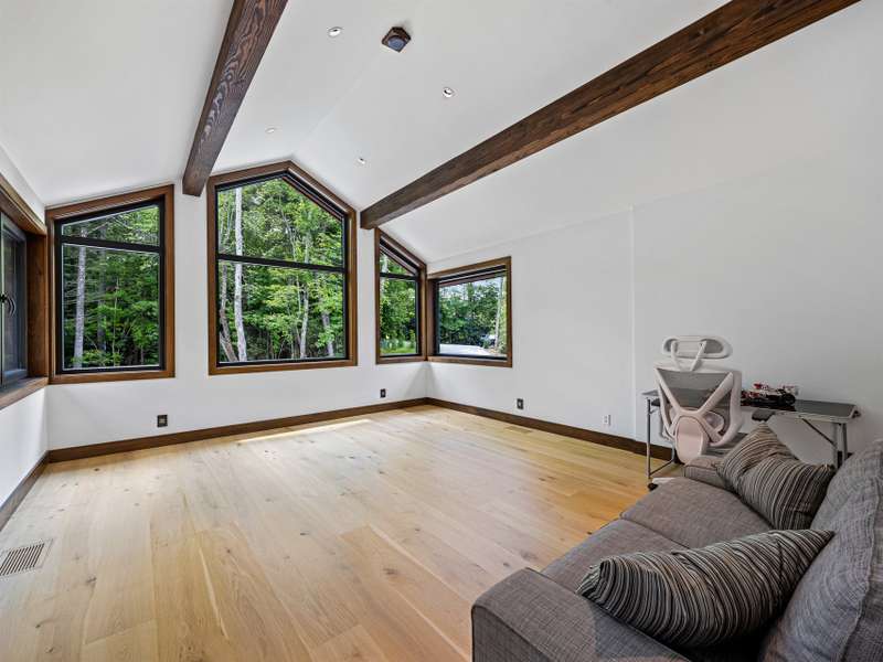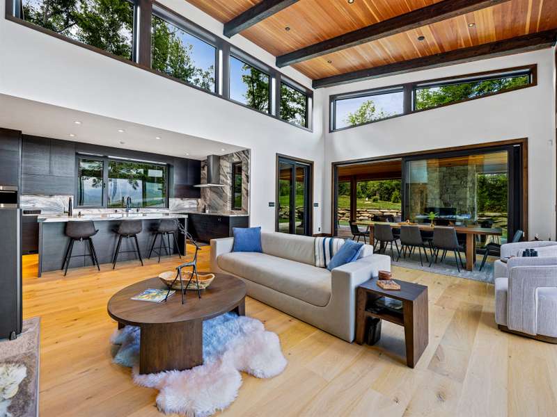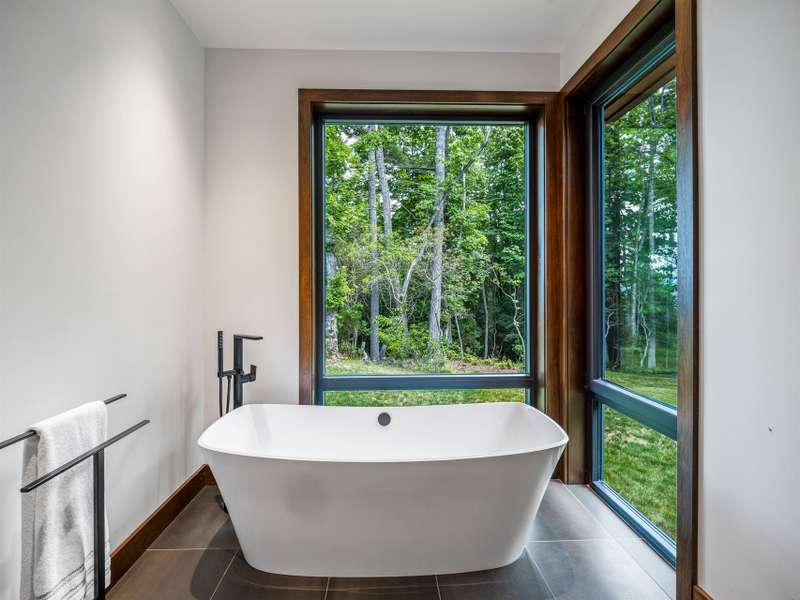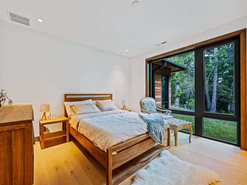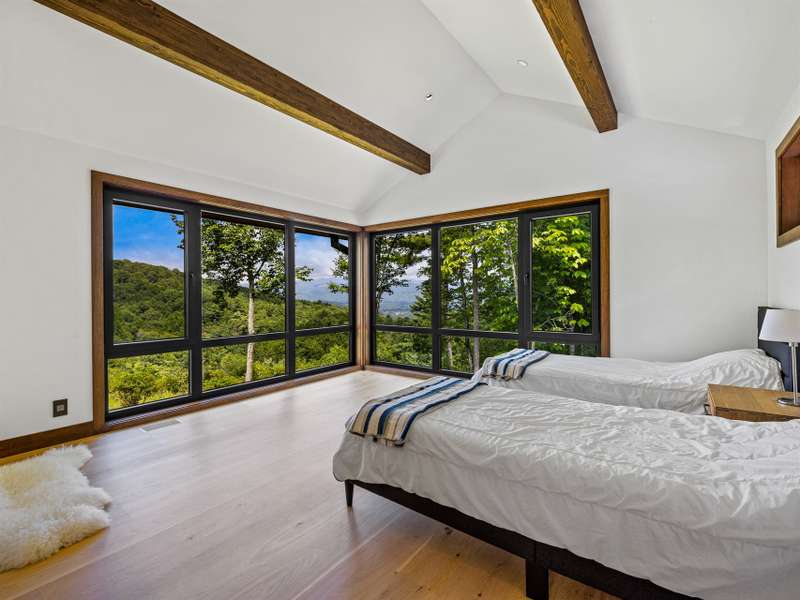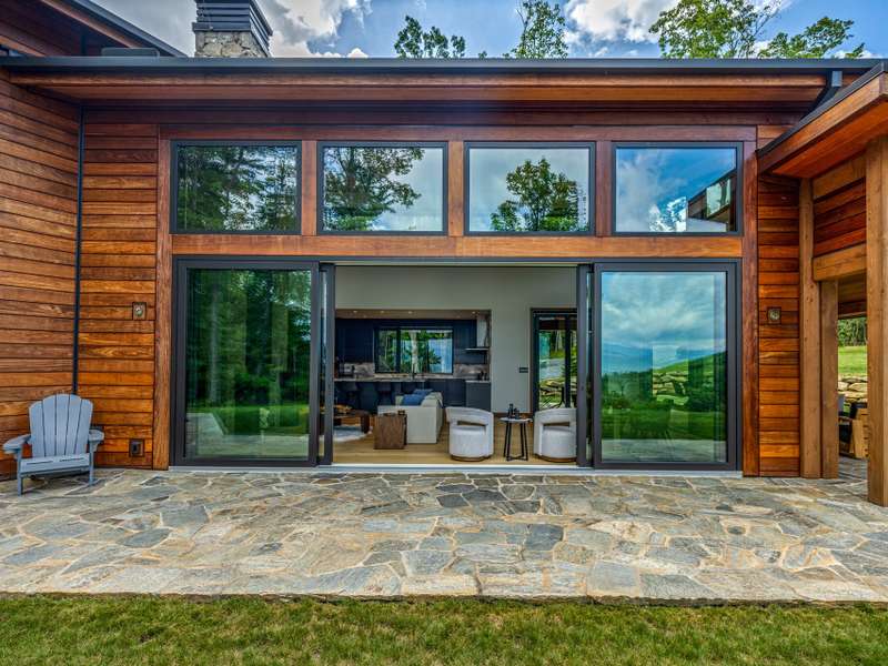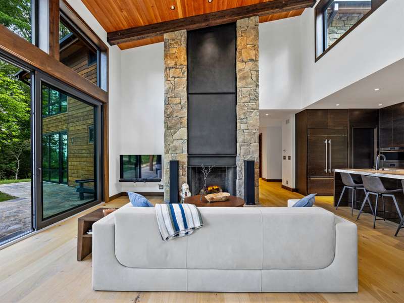 One of Brevard's most exceptional view homes, this European-inspired modern rustic retreat by Platt Architecture sits on 4+ wooded acres in Eagle Lake, just 12 minutes from downtown. Enjoy year-round Blue Ridge Mountain views?including a stunning view of Cedar Rock in Pisgah National Forest?and easy access to a private 30-acre high-elevation lake. Premium finishes include K?mmerling steel-frame windows and doors, imported European White Oak floors, handcrafted Walnut cabinetry and trim, and floating stairs. The exterior features durable and elegant Brazilian Ipe siding. Geothermal HVAC with humidifier and fresh air intake ensures year-round comfort. The open floor plan flows effortlessly onto a spacious covered porch with a wood-burning fireplace and a level yard?perfect for outdoor entertaining or play. A branch of Philips Creek meanders through the property, including a lower-level over sized garage/ workshop. Crafted with care, this home offers refined mountain living at its finest.