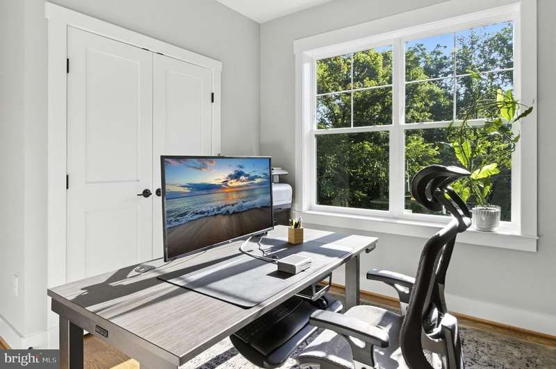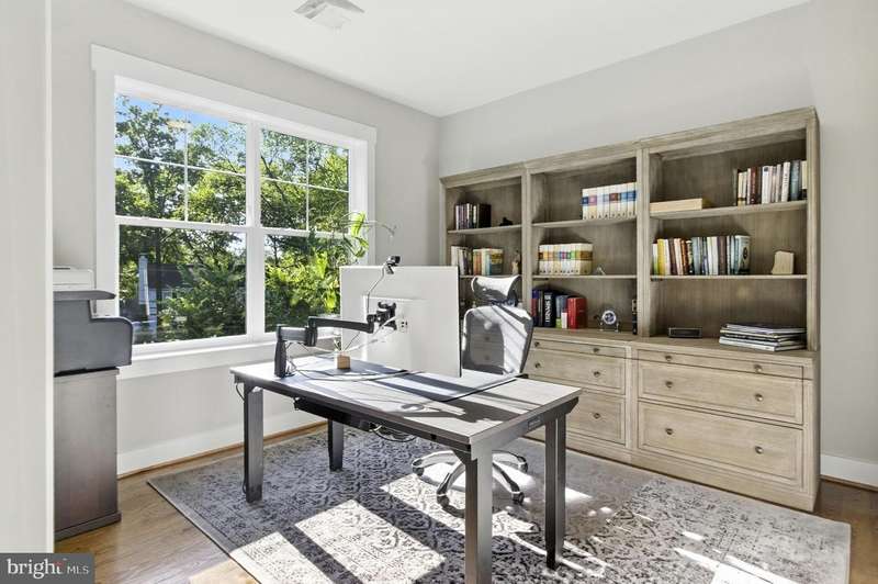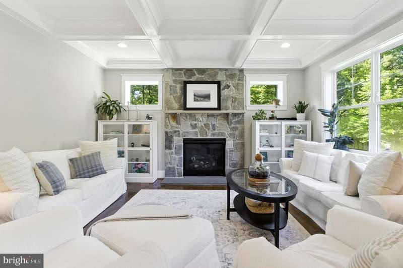 Located in the coveted Whitman school district, this recently built smart home boasts almost 4,500 sq. ft. of space (see Matterport floor plan in photos). This true gem of a home blends timeless craftsmanship with modern luxury. Designed with an open-concept layout, it features wide-plank hardwood floors, coffered ceilings, upscale finishes, and even a charger in the garage for your electric vehicle. The main level centers around a chef's kitchen with quartz countertops, stainless steel appliances, premium soft-close cabinetry with pull-outs, and a large island-ideal for daily living and entertaining. The adjacent living room boasts a stone gas fireplace, coffered ceiling, and abundant recessed lighting. A private study with French doors offers a quiet workspace or retreat, while the formal dining room is accented with elegant moldings and natural light. Upstairs, five spacious bedrooms and three full baths include a luxurious primary suite with two walk-in closets and a spa-like en-suite bath. The finished lower level adds versatility with a bright rec room, sixth bedroom with walk-in closet, stylish fourth full bath, and generous storage. Outdoor spaces include a sunny deck, charming front porch, and a large, landscaped backyard with rear fencing-perfect for relaxing or entertaining. Set in the desirable Burning Tree community, this exceptional home offers convenient access to downtown Bethesda, DC, and major commuter routes. Another added bonus, there's no HOA.