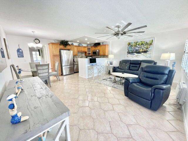 UPDATED 1 bedroom,1 .5 baths condo located on the second floor in a prime location . Tile floor throughout the entire condo.Open floor plan, updated kitchen with granite counter top and stainless steel appliances; plantation shutters and IMPACT WINDOWS. Enclosed patio with a relaxing views of tropical trees & lush landscaping . Come see what this condo has to offer. It is ready for you to make it your Own. The community has a clubhouse, gym, pools, theater, tennis, different classes, and free transportation inside and out. Close to the beach, restaurants, shopping, and more. Water and basic cable are included in the HOA fee..This is a 55+ community
