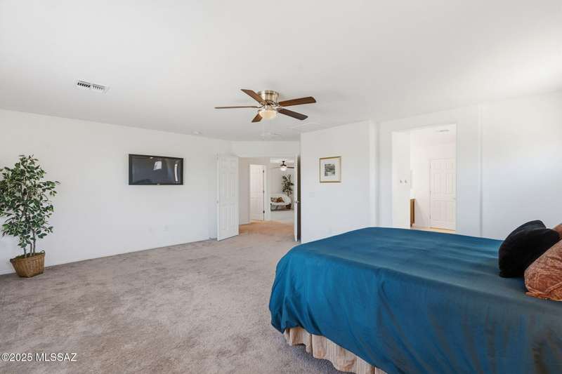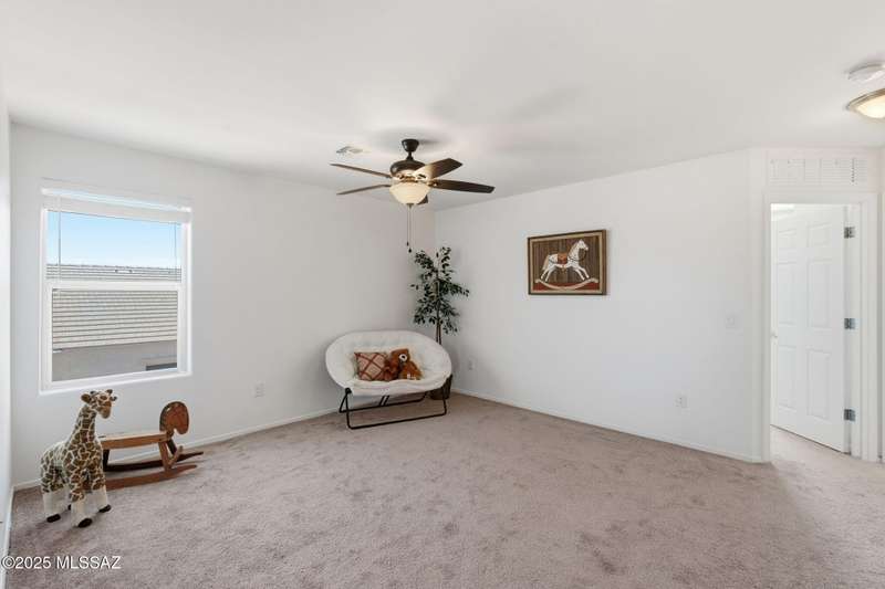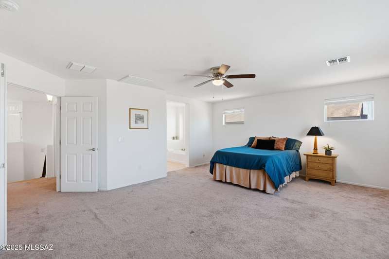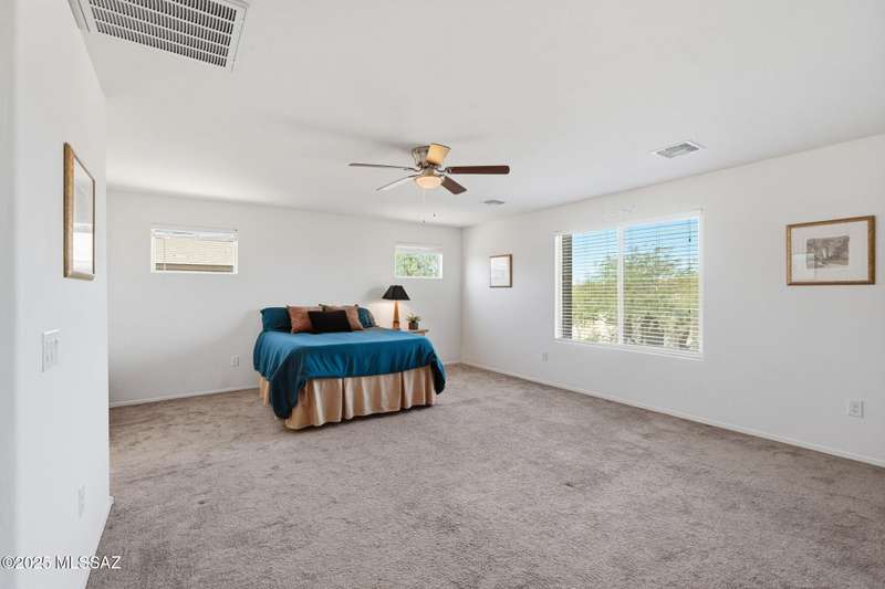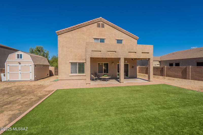 This beautiful home offers 4bd + den, 2.5 baths & a spacious open-concept layout. Kitchen opens to living room & features lg island, breakfast bar & formal dining room. All bedrooms on 2nd level, along with a versatile loft & conveniently located laundry room. Primary suite has soaking tub, dual sink vanity, double shower heads & huge walk-in closet. Step outside to enjoy effortless outdoor living with shaded patio & low-maintenance turf lawn. An extended 2-car garage w/overhead racks + a spacious Tuff shed offer storage options while a solar energy system, quantum fiber internet, Electric Vehicle charging Outlet & water softener add comfort & savings. Located in desirable San Lucas Community with surrounding 2-mile loop trail & several parks offering sports courts, playground & dog park.