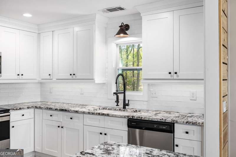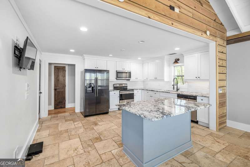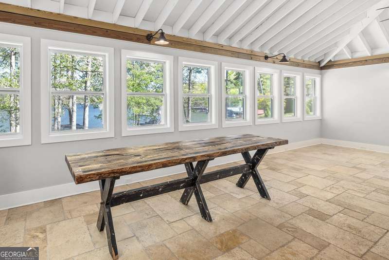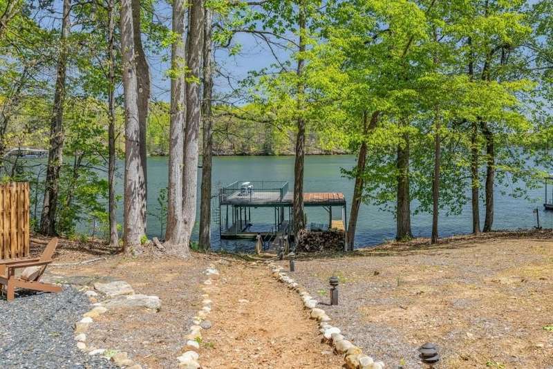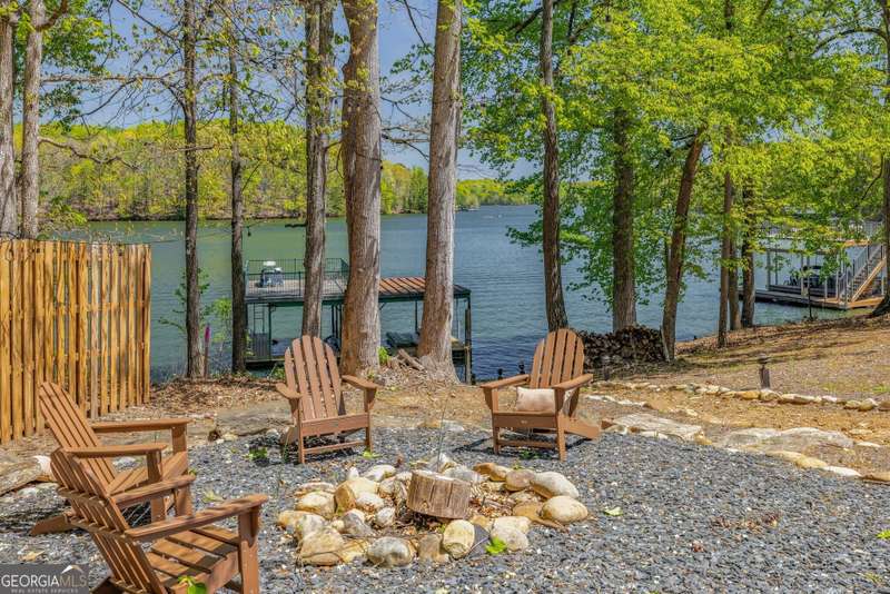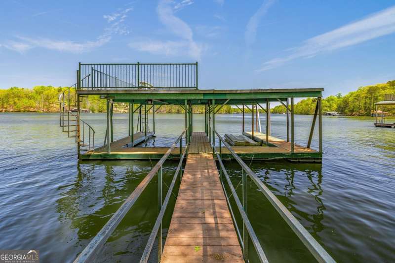 Beautifully renovated and inviting, this lakefront home is situated along the shores of Lake Lanier, offering breathtaking big-water views and a gentle, short walk to a deep-water double-slip dock. Located on a peaceful private road, this serene retreat blends comfort and style with a vaulted, beamed ceiling and luxurious heated tile floors. The open-concept kitchen features granite countertops, a spacious island, and ample cabinetry and workspace-ideal for entertaining or quiet evenings at home. An abundance of windows flood the home with natural light and frame the stunning lake views, seamlessly bringing the outdoors inside. The main level offers two bedrooms and a full bath, while the entire upper level is dedicated to a private primary suite featuring a beautifully renovated en-suite bath with a custom-tiled shower. Just a short drive or boat ride to Chattahoochee Golf & Country Club, grocery stores, and only 5 miles from downtown Gainesville dining and entertainment.