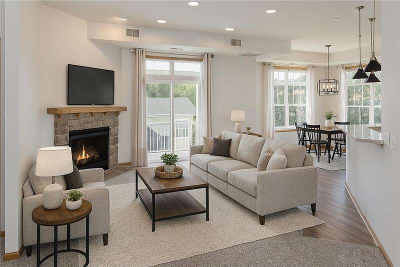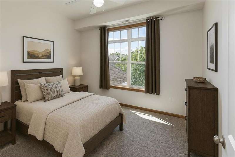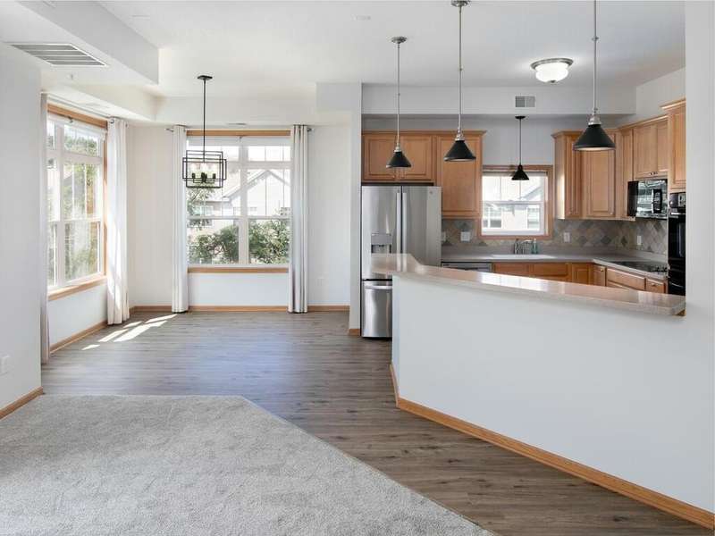 Welcome to carefree one-level living in this sun filled, corner unit located in prime Chanhassen location! 10ft. ceilings, walls of windows and open floor plan make this a great choice for your next home. Inviting, spacious entry that opens into the main living space with a stone gas fireplace. Open kitchen with new refrigerator, double ovens, cooktop, microwave, quartz countertops and breakfast bar. New LVP flooring in kitchen and dining room and new carpet throughout the unit. The large primary bedroom boasts a walk-in closet and a large full bathroom complete with separate shower, soaking tub and double sink vanity. Enjoy morning coffee or quiet evenings on your private deck! Secure, quiet building with only 12 units, elevator and underground heated parking complete with car wash. This unit features 2 parking stalls and private storage closet. Enjoy the community pool, walking paths, playground and convenient access to shopping, schools and major highways!