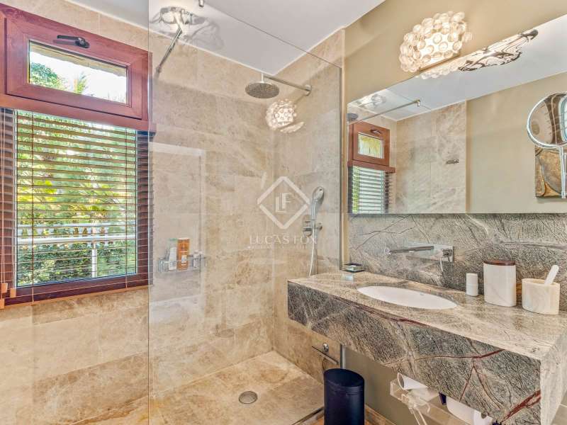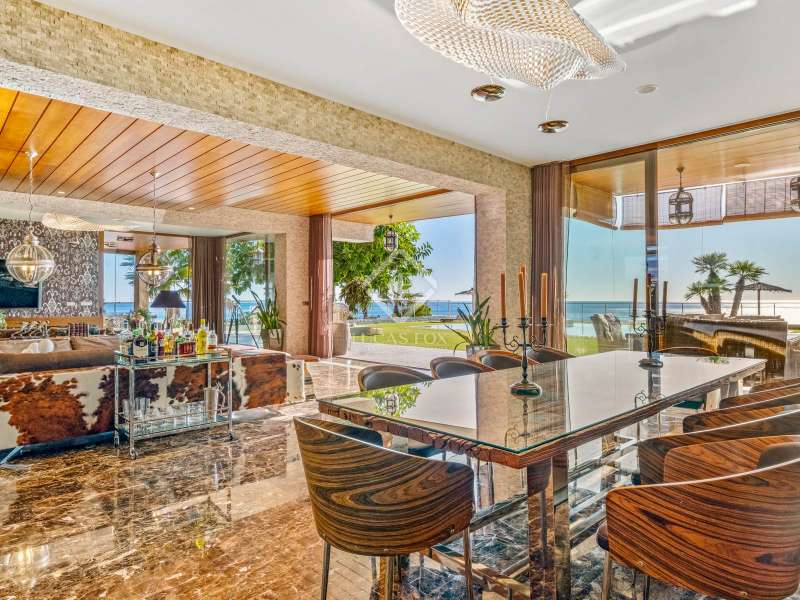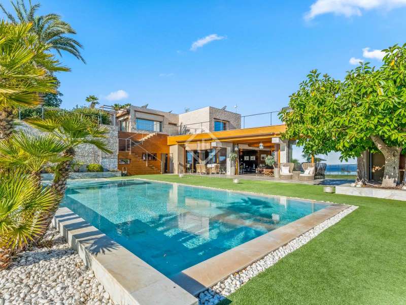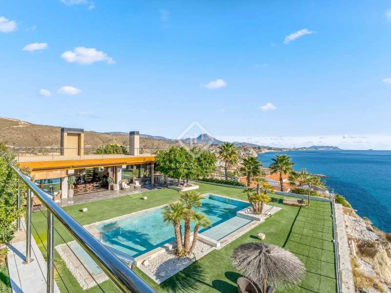 Lucas Fox Alicante is pleased to present this unique house on the front line and with the best sea views. A dream home that combines the best qualities, space and privacy for your family and guests. It is located in a quiet area of El Campello, near the Lanuza tram station, just 10 minutes from the centers of El Campello and Villajoyosa. The beach is right next door. The property has a large plot of 2,230 m² with panoramic views, a spa area and a 13 x 6 meter saline chlorination pool, ideal for swimming or relaxing while enjoying the sun and the magnificent views. Once inside, the day area has a large living room with large windows designed to make the most of the light and views. This beautiful room with a fireplace, luxuriously decorated, access to a very cozy porch with barbecue and summer living room . On the other side, we find the kitchen fully equipped with Gaggenau and Siemens appliances , as well as a pantry and a wine cellar. On this floor we also find a guest bathroom for your guests. Climbing the beautiful stairs or taking the lift, we reach the night area which is located in another wing of the house, which guarantees great tranquility and privacy. This area consists of four very bright bedrooms with sea views, each with its private bathroom and access to the upper part of the garden. In another wing of the house, we have another area with its own entrance, consisting of a living room with an open kitchen, a guest toilet and two large bedrooms with a private bathroom. This area is perfect if you have family or guests who need their independence or if you want to accommodate some service personnel. Finally, on the lower ground floor we have a garage for five cars with its workshop area, as well as a storage room and a toilet. From the garage, you can enter the house through a large entrance hall with direct access to the lift. It is important to highlight that the house offers the best qualities to live in the most comfortable and sustainable way: ducted air conditioning, underfloor heating through water tubes, Schüko glazing of the best quality, solar panels, aerothermics system and water recycling. , among others. Get in touch for more information.