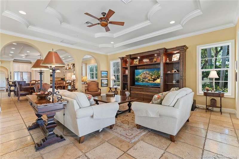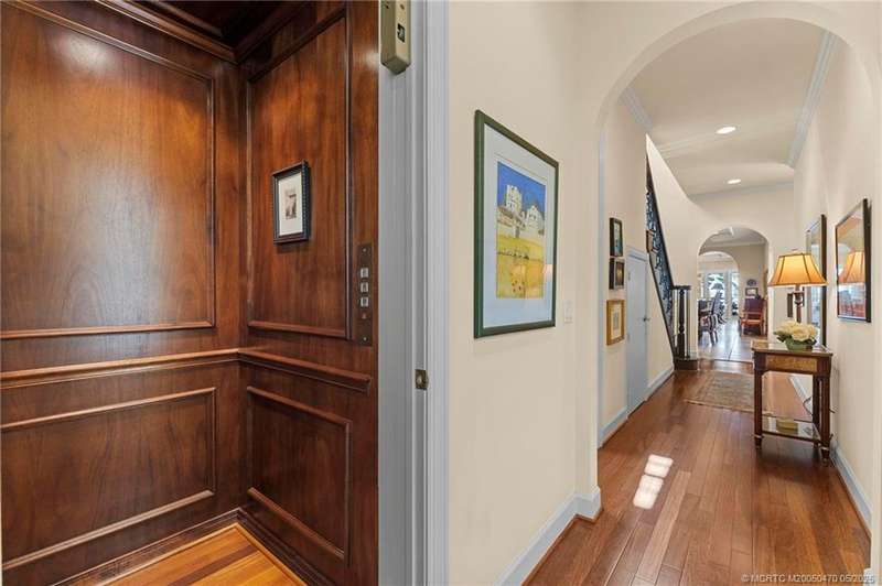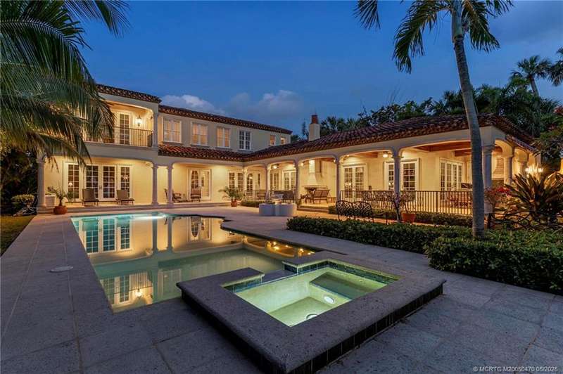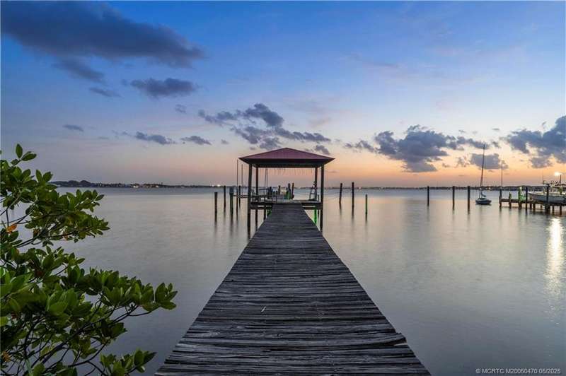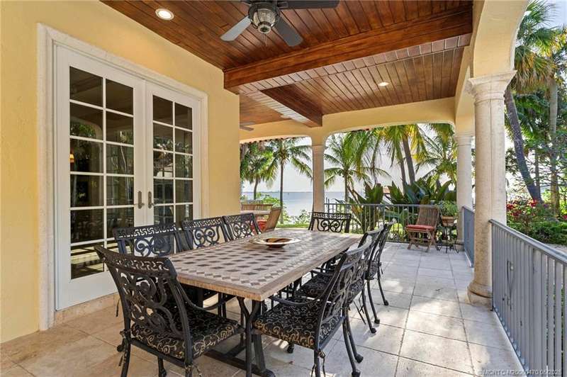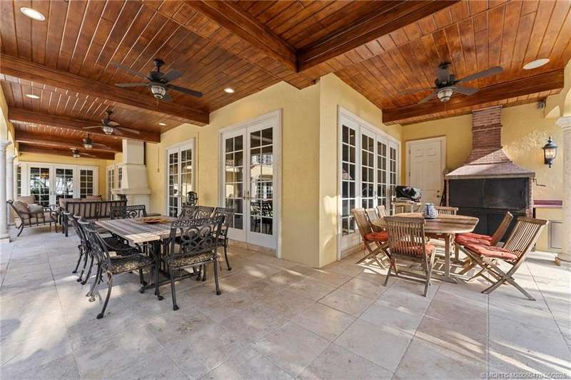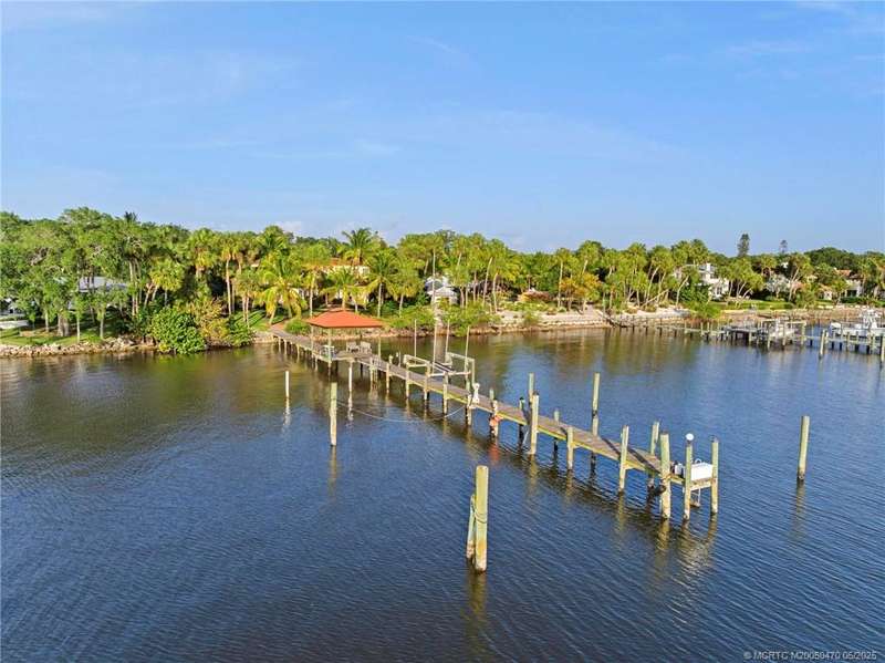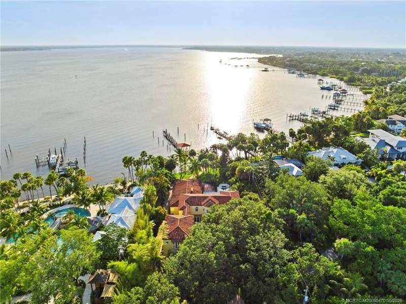 Under the shade of mature oaks and cypress trees is a piece of Italy in Sewall's Point. Located on a private drive in North Sewall's Point on a rare piece wide waterfront land, Villa Loggia was crafted as an escape to the Mediterranean. Deep water access will allow the largest of vessels. Downstairs, a mahogany clad office holds a thrilling secret: A temperature-controlled wine cellar welcomes your collection. Kitchen is the heart of the home with double island, family table area, and living. An elevator brings you one of the largest owner's suites in Sewall's Point. Grand closet, spacious bath, abundant storage, and walkout balcony. En-suite bedrooms with sitting area complete the upstairs. Full impact windows and doors, true 3 car garage, generator, large laundry and rod storage. Grand covered loggia living room with fireplace, built-in grill and oven, sunset gazebo, and lap pool punctuate the home. Dock has covered deck for sitting and fishing, and multiple docking slips.