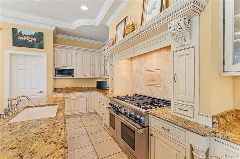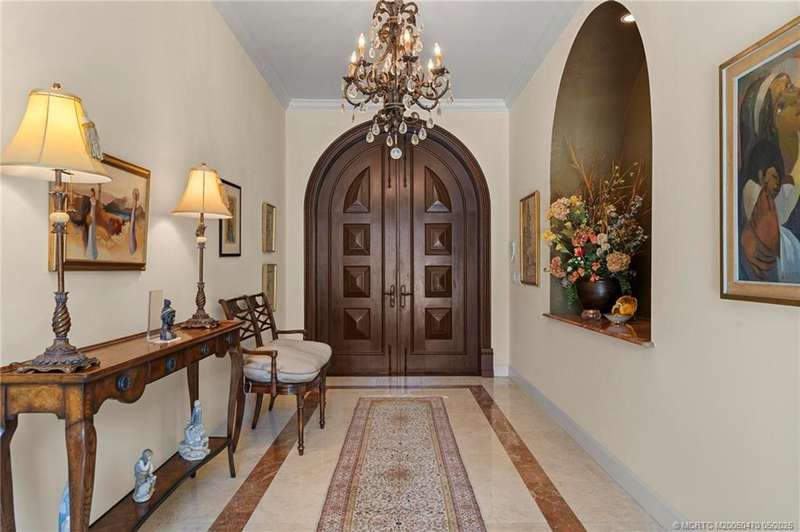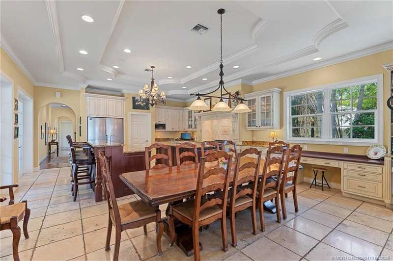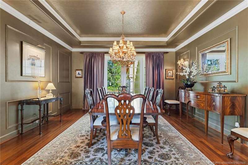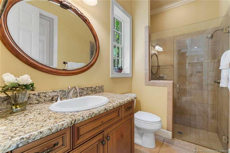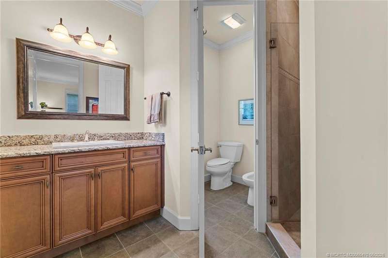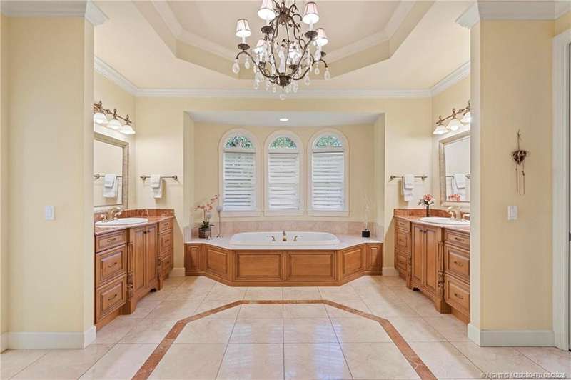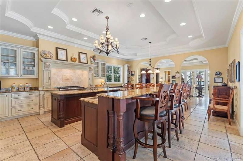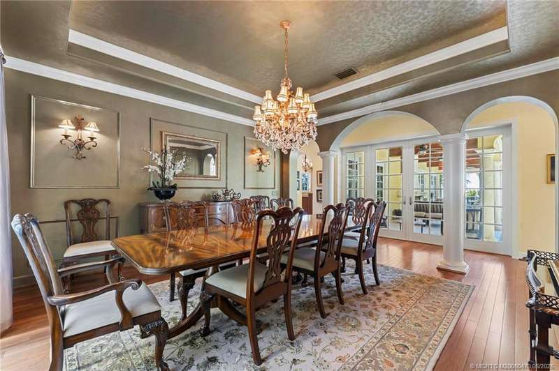 Under the shade of mature oaks and cypress trees is a piece of Italy in Sewall's Point. Located on a private drive in North Sewall's Point on a rare piece wide waterfront land, Villa Loggia was crafted as an escape to the Mediterranean. Deep water access will allow the largest of vessels. Downstairs, a mahogany clad office holds a thrilling secret: A temperature-controlled wine cellar welcomes your collection. Kitchen is the heart of the home with double island, family table area, and living. An elevator brings you one of the largest owner's suites in Sewall's Point. Grand closet, spacious bath, abundant storage, and walkout balcony. En-suite bedrooms with sitting area complete the upstairs. Full impact windows and doors, true 3 car garage, generator, large laundry and rod storage. Grand covered loggia living room with fireplace, built-in grill and oven, sunset gazebo, and lap pool punctuate the home. Dock has covered deck for sitting and fishing, and multiple docking slips.