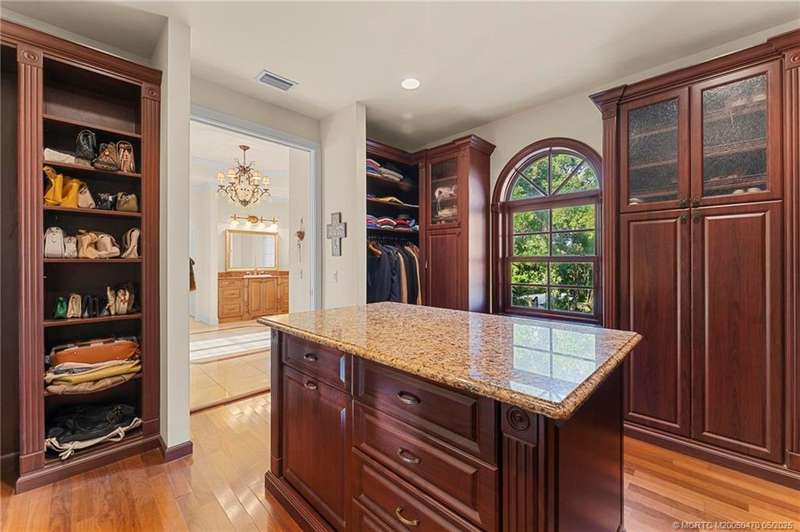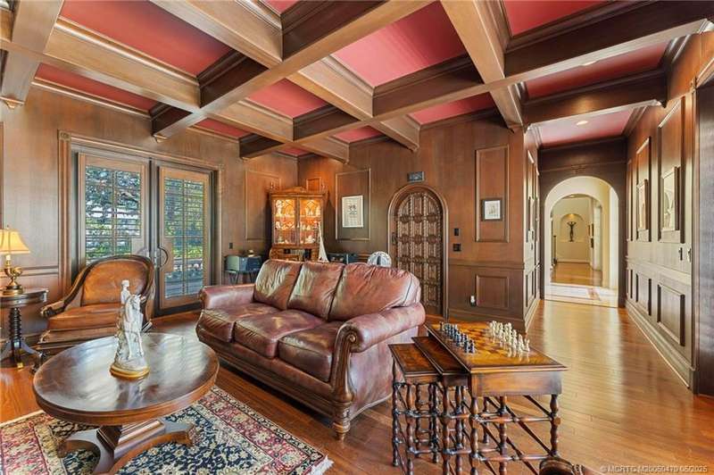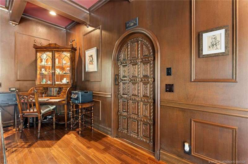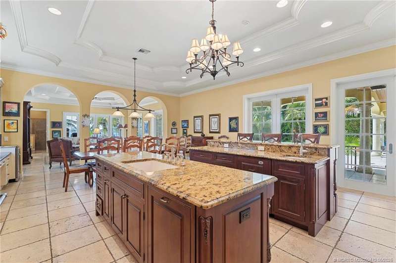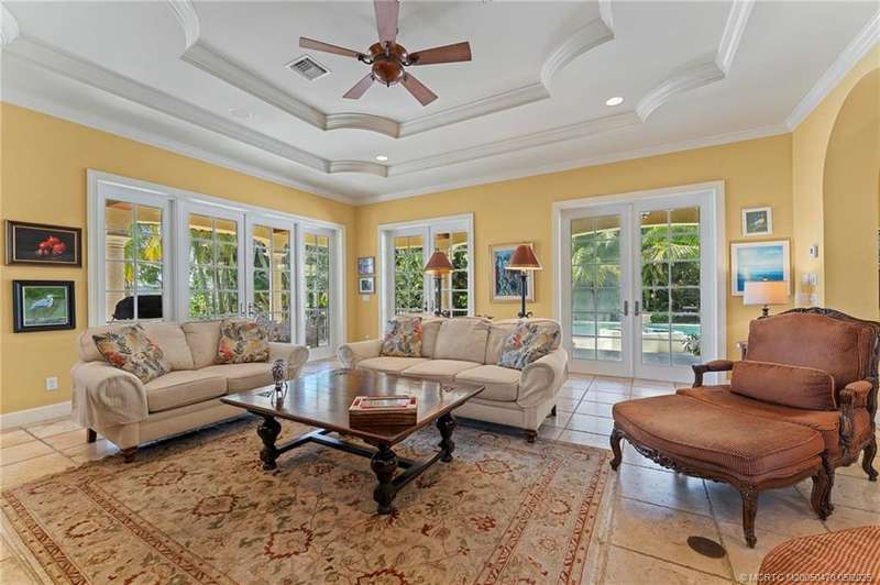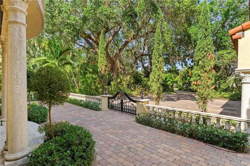 Under the shade of matur? o?ks ?nd c??r?ss trees is ? p?ece of Italy in Sewall's Point. Located on a private drive in North Sewall's Point on a rare piece wide waterfront land, Villa Loggia was crafted as an escape to the Mediterranean. Deep water access will allow the largest of vessels. Downstairs, a mahogany clad office holds a thrilling secret: A temperature-controlled wine cellar welcomes your collection. Kitchen is the heart of the home with double island, family table area, and living. An elevator brings you one of the largest owner's suites in Sewall's Point. Grand closet, spacious bath, abundant storage, and walkout balcony. En-suite bedrooms with sitting area complete the upstairs. Full impact windows and doors, true 3 car garage, generator, large laundry and rod storage. Grand covered loggia living room with fireplace, built-in grill and oven, sunset gazebo, and lap pool punctuate the home. Dock has covered deck for sitting and fishing, and multiple docking slips.