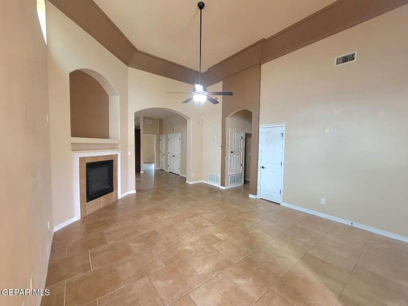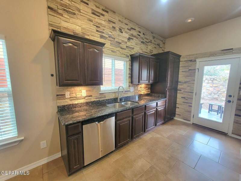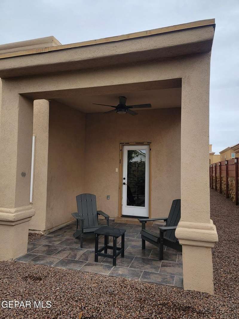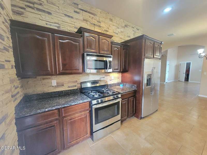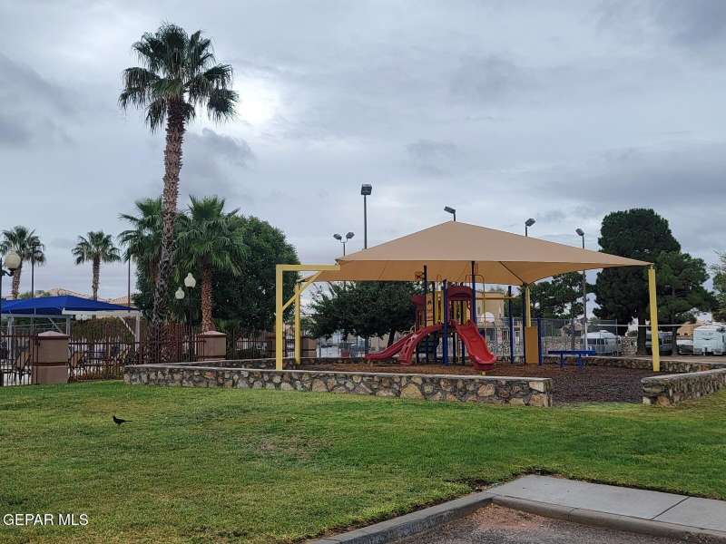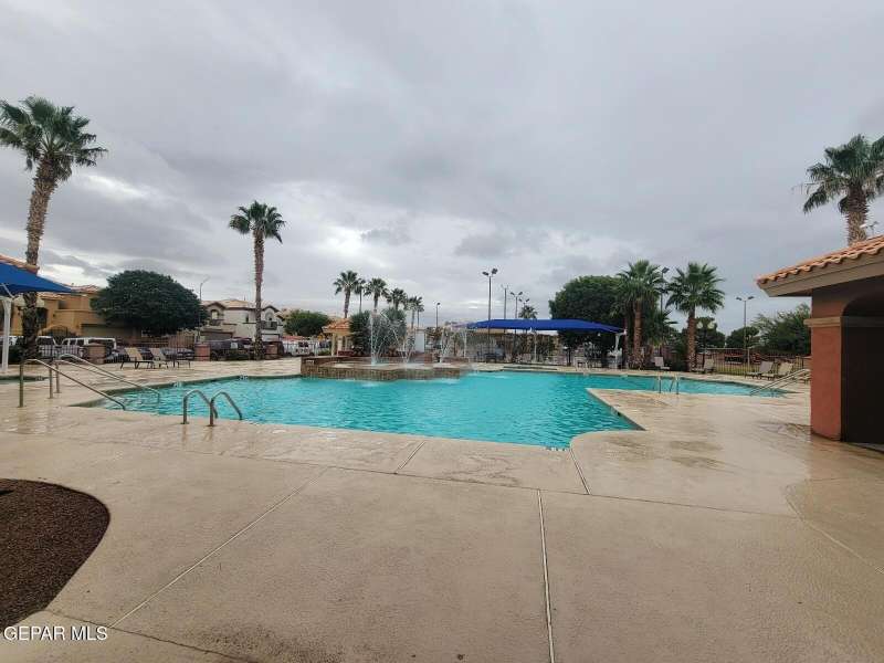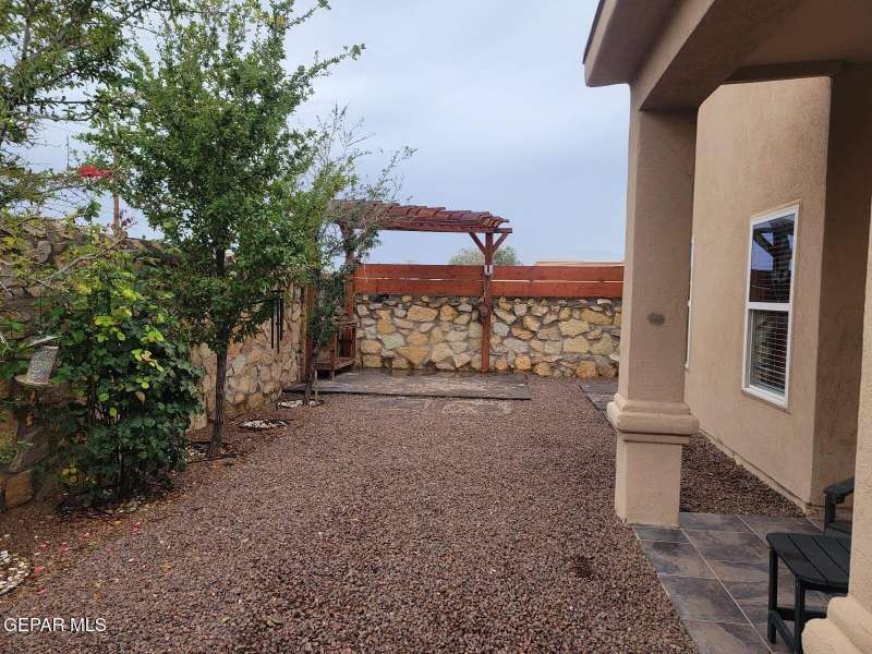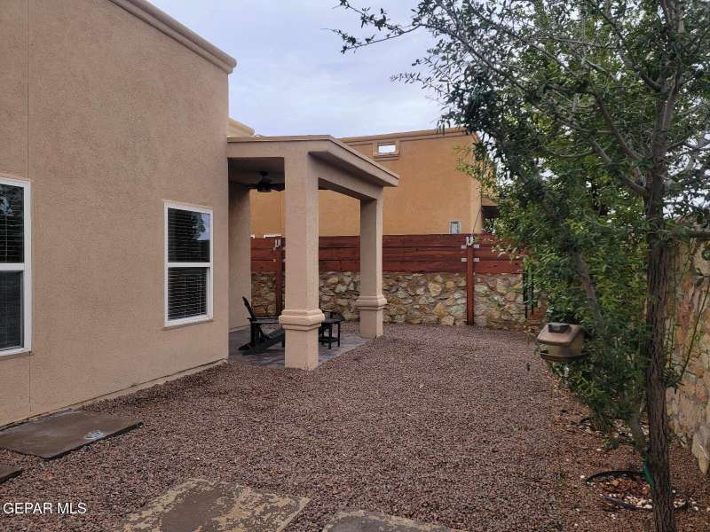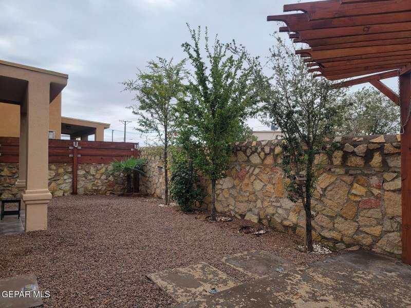 This well kept home is located in the Las Palmas Gated Community and features a private gated courtyard, rock landscaping front and back, backyard pergola, trees, kitchen has beautiful custom stonework, and stainless steel appliances. Home also features tile throughout, no carpet and has refrigerated air. Residents in Las Palmas have access to a community swimming pool, gym, tennis courts, playground and RV parking.