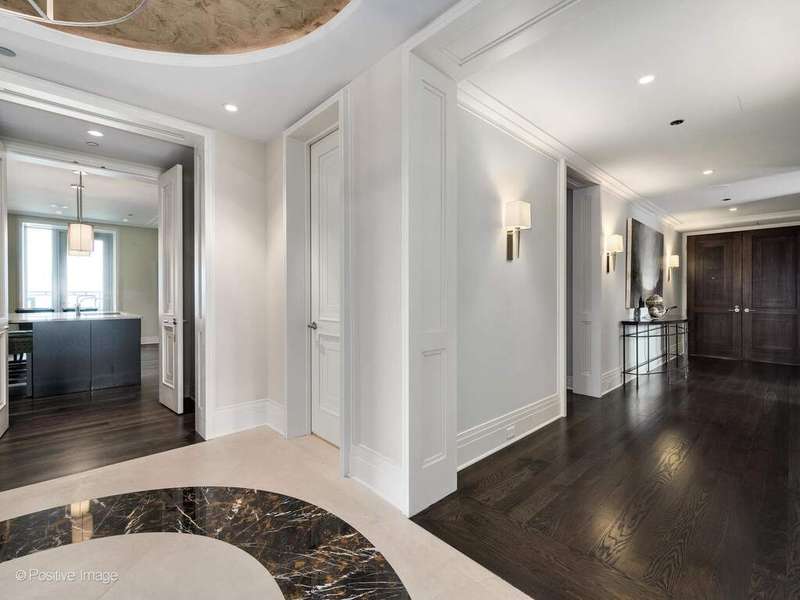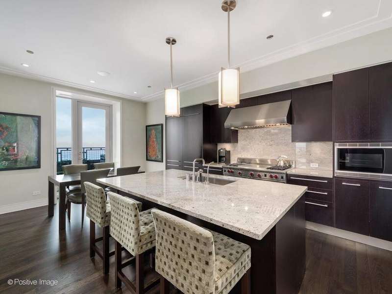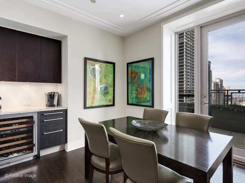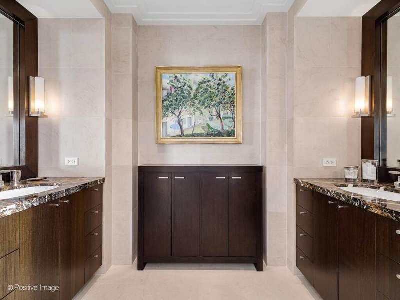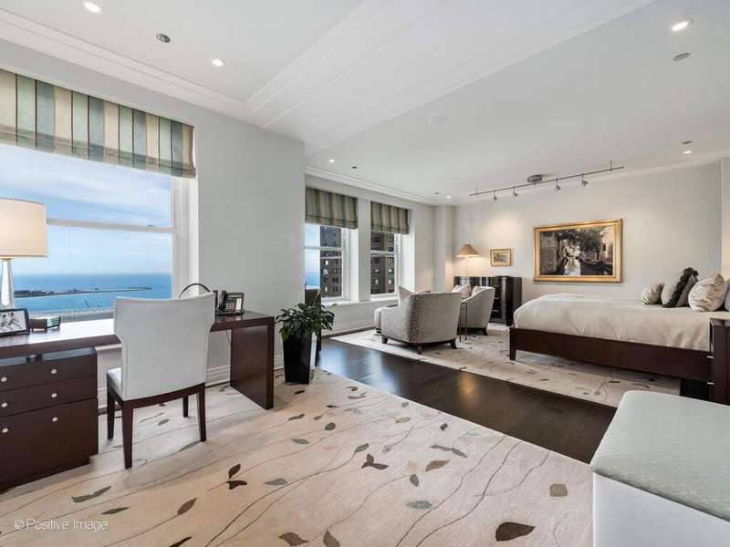 This exquisite, one-of-a-kind half-floor home at the iconic Palmolive offers luxurious living and is one of only five homes in the building with outdoor space. This phenomenal home boasts nearly 5,000 square feet of interior living space with an additional 1,600 square feet of magnificent terrace space with extraordinary city and lake views. The floorplan is exceptional and offers direct access to the terrace from the kitchen, living and dining room, as well as from the guest suite. Incredible design, detail and the highest quality finishes can be found throughout the home including gorgeous wide-plank oak flooring. Impressive double doors lead into the grand foyer. Beyond the foyer is an enormous, inviting living room and dining room/salon flanked by a dual-sided fireplace, and is perfect for entertaining and hosting dinners. Gorgeous original moldings and millwork are highlights of the space. The chef's kitchen is outfitted with Wolf, Miele, and Sub-Zero appliances, including a double oven and separate wine refrigerator. Additionally, the kitchen features amazing storage and a large eat-in area with direct access to the terrace, making it ideal for grilling. Wake to sensational views of the lake from the gracious primary suite that can accommodate a comfortable sitting area and desk. The spa-like marble primary bath features a deep soaking tub with picture window looking out at the lake above, a large walk-in shower, as well as dual vanities. Two additional ensuite bedrooms are perfect in size and offer generous closet space. An elegant study with built-ins and an adjacent custom built office area, a spacious laundry room with abundant storage, and a beautiful marble powder room complete this fabulous city home. The Palmolive provides exceptional services, including 24-hour door staff, onsite manager, concierge, and engineer, a fully equipped fitness center, a whirlpool and steam room, as well as the Beacon Club room for entertaining. The building has an onsite garage with valet parking and the right to two car parking is included. Enjoy everything the Gold Coast and Magnificent Mile has to offer including world class shopping and dining.
