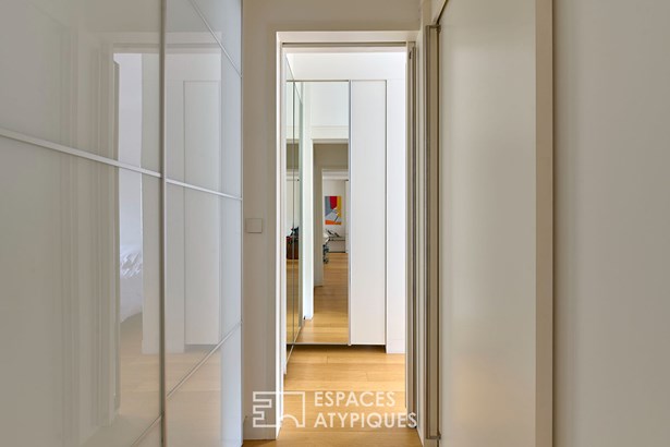 The entrance reveals a 62 sqm space bathed in light, thanks to a double East/West exposure, which accentuates the feeling of space.