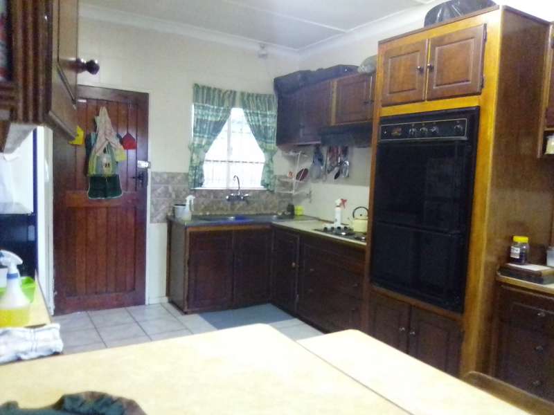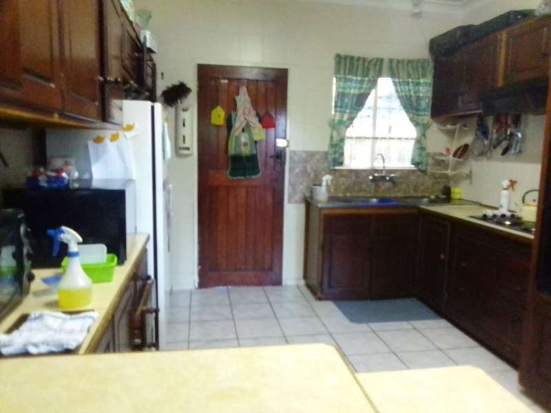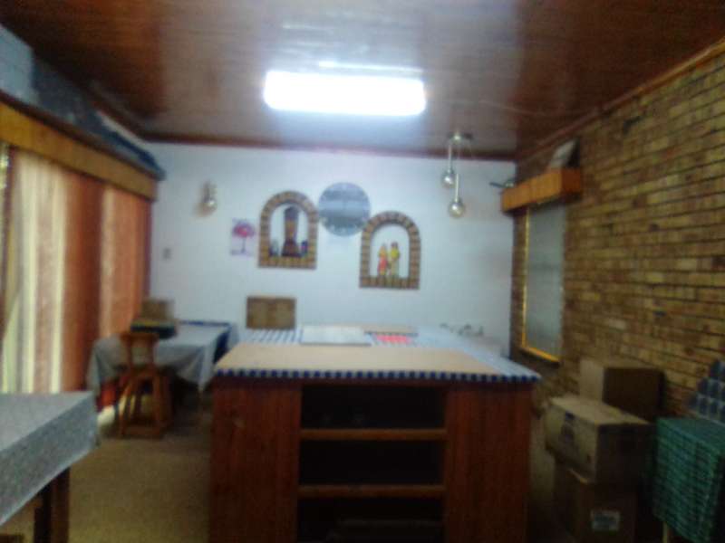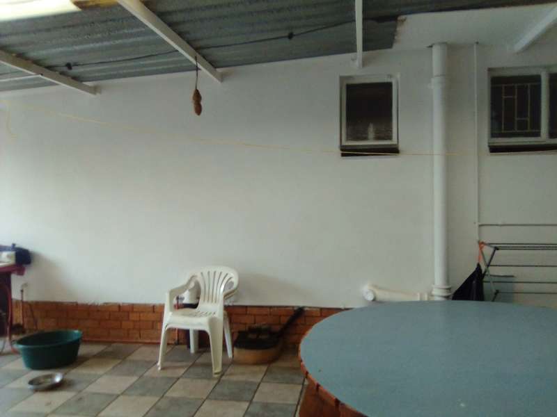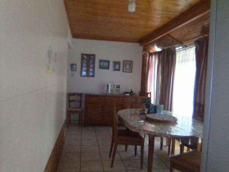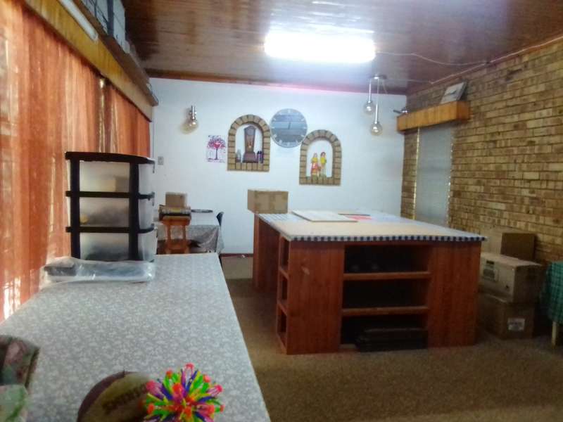 3 bedroom house with flat for sale Enterance hall 3 Bedrooms with carpets and cupboards 2 bathrooms of which on is en - suite Kitchen with plenty of cupboards Lounge Tv room Dining room Flatlet 1 Bedroom with bath room and lounge which can be a lounge kitchen open plan with a kitchenette outside room with toilet 2 Store rooms in garage 3 Garages with 2 remote doors and one not with a electronic gate outside store room outside at the back of the house zink Established garden