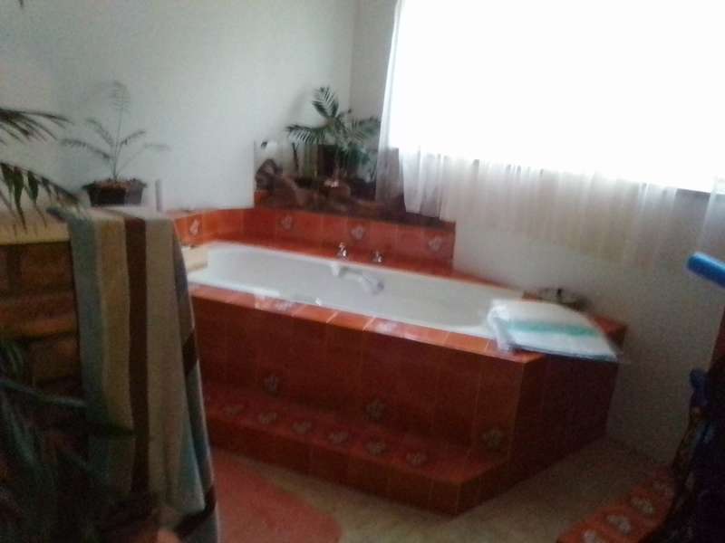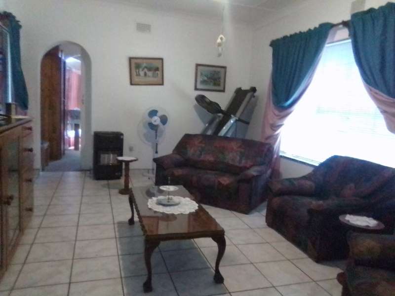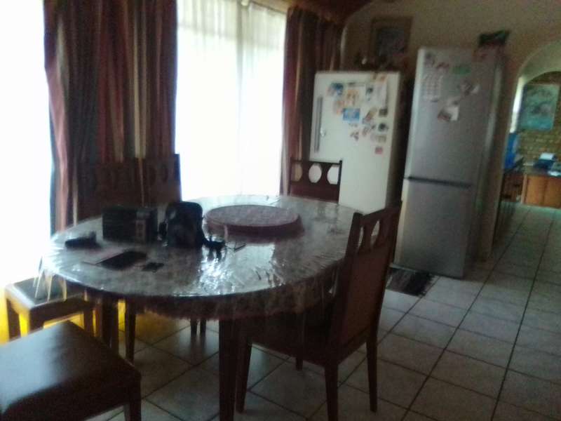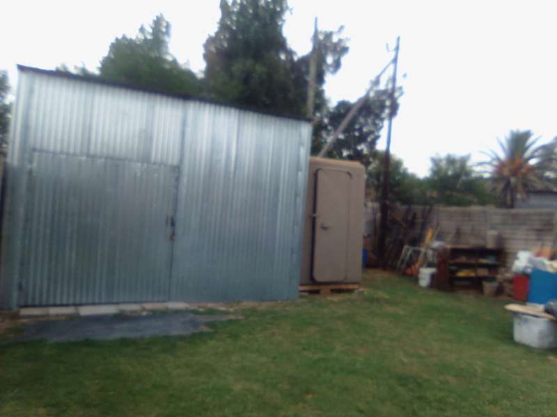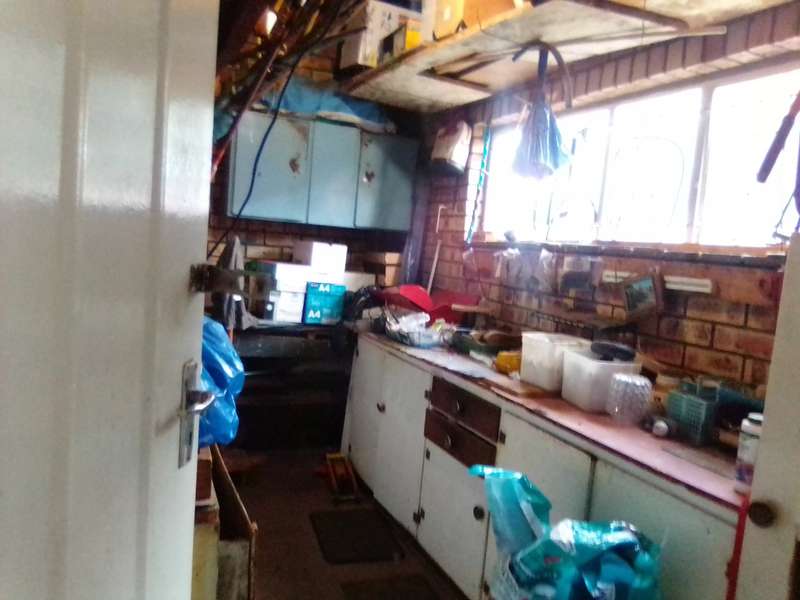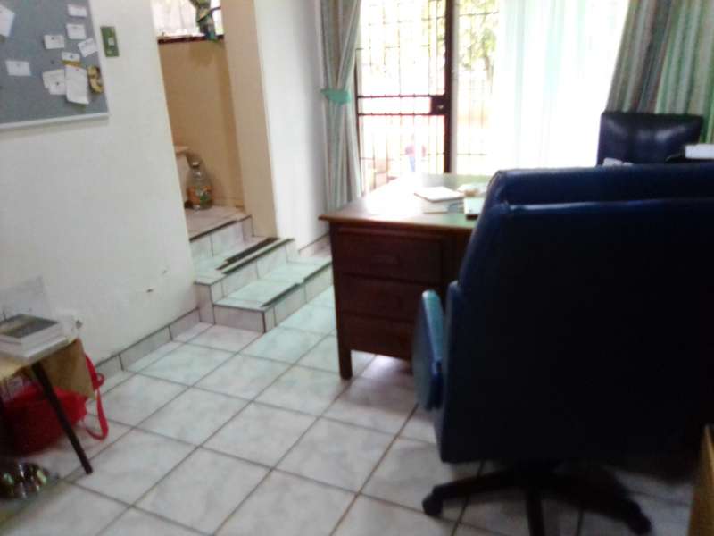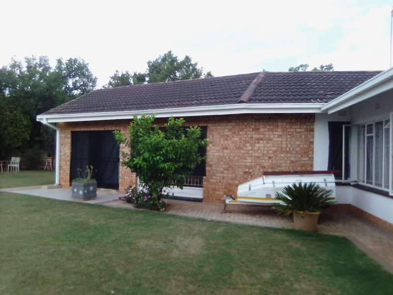 3 bedroom house with flat for sale Enterance hall 3 Bedrooms with carpets and cupboards 2 bathrooms of which on is en - suite Kitchen with plenty of cupboards Lounge Tv room Dining room Flatlet 1 Bedroom with bath room and lounge which can be a lounge kitchen open plan with a kitchenette outside room with toilet 2 Store rooms in garage 3 Garages with 2 remote doors and one not with a electronic gate outside store room outside at the back of the house zink Established garden