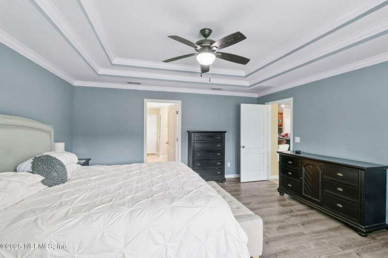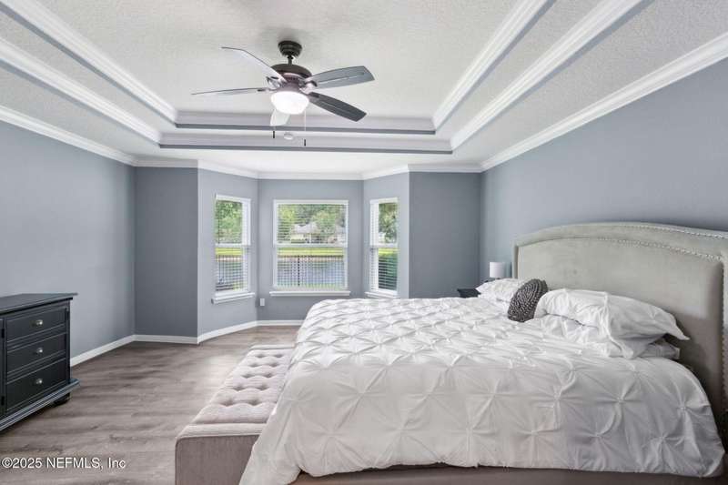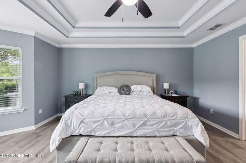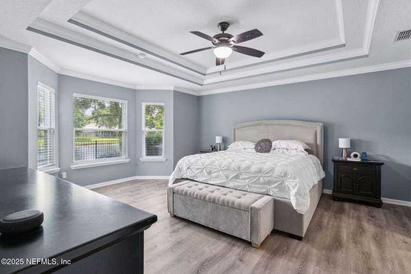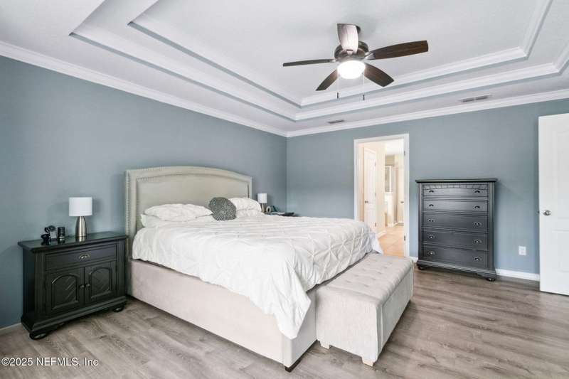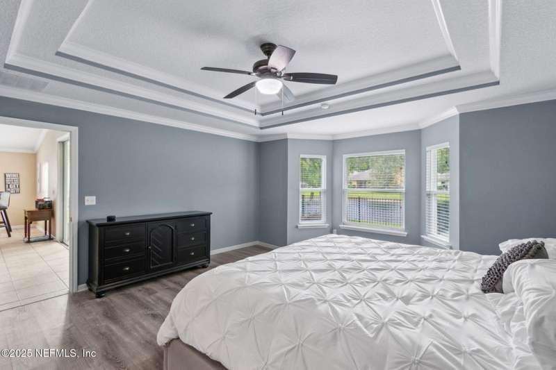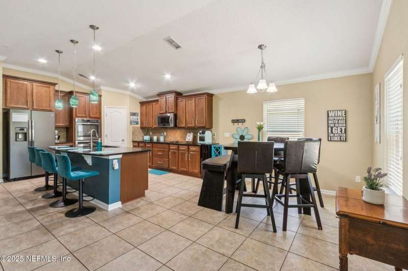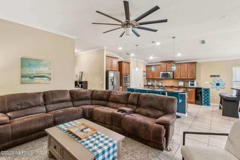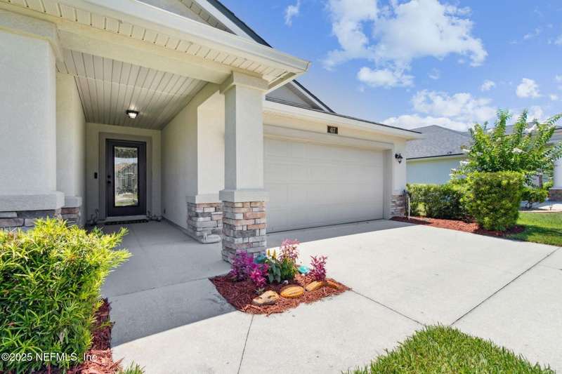 Enjoy resort-style living in this beautiful 4-bedroom, 2.5-bath family home located in the highly desirable MuraBella community. Just minutes from World Golf Village and the iconic King & Bear golf course-co-designed by Jack Nicklaus and Arnold Palmer - this home offers the perfect blend of comfort, convenience, and exceptional lifestyle amenities in one of Florida's top-rated school districts: St. Johns County. Offering 2,042 square feet of living space, this home features attractive stucco and ledgestone accents that create impressive curb appeal. Inside, the open-concept layout seamlessly connects the kitchen, dining, and family room-ideal for entertaining and everyday living. A popular split-bedroom floor plan provides privacy and flexibility for families and guests alike. The gourmet kitchen is a true centerpiece, complete with a large island with double sink, flat-panel maple cabinetry, ceramic tile backsplash, pantry closet, pendant and recessed lighting, and a double oven - both functional and stylish for cooking or hosting. The spacious owner's suite serves as a private retreat, highlighted by a bay window sitting area and a double-step tray ceiling. The en-suite bath includes a garden tub, separate tiled shower with seating, dual vanities, private water closet, linen storage, and a large walk-in closet. Bedrooms two and three are generously sized and share a full bathroom. The fourth bedroom, located near the half bath, is perfect for guests or can serve as a home office. Additional features include a full water softener loop and a finished two-car garage. Outdoor living is a highlight with a screened-in Lanai and exterior grilling patio, all overlooking a fully fenced backyard and peaceful lake. It's an ideal setting for morning coffee, weekend barbecues, or relaxing sunsets. A programmable color-changing exterior lighting system adds a festive touch for holidays and special occasions.MuraBella residents enjoy an incredible array of resort-style amenities: Clubhouse and state-of-the-art fitness center, Resort-style swimming pool with waterslide tower, Lap pool and splash park, Tennis, volleyball, and multi-purpose sports courts, Soccer and softball fields, Children's playground, amphitheater, and party pavilion. With its unbeatable location, spacious layout, and access to premier community amenities, 417 Palazzo Circle offers a lifestyle you'll love coming home to. Schedule your private tour today!