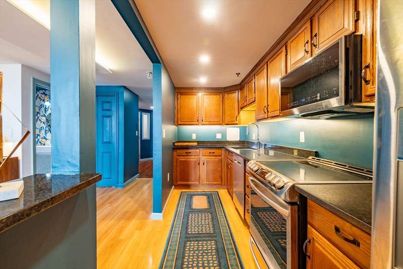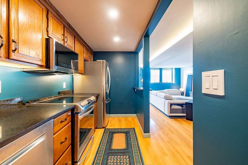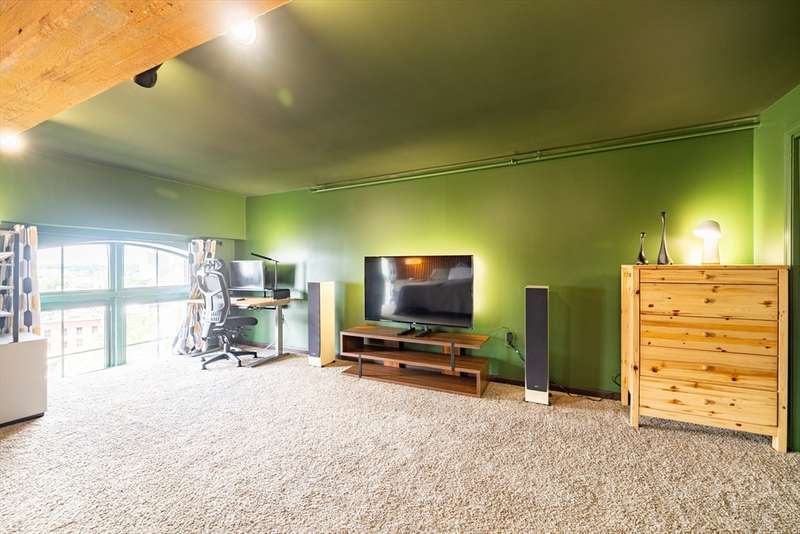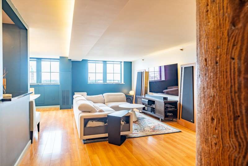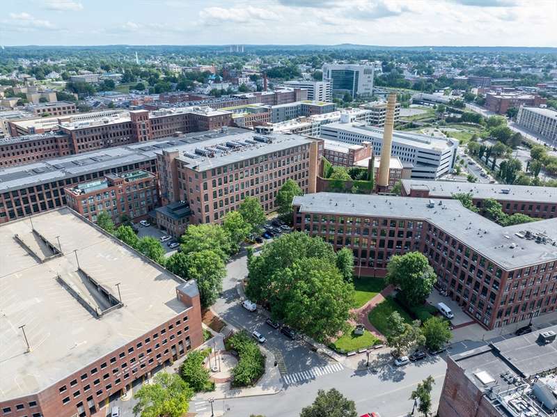 Discover this stunningly updated loft-style condo with a one-of-a-kind penthouse view of downtown Lowell and ideally equipped for all your work-from-home needs. Step inside to an expansive open-concept living space that complements the building’s historic industrial character with modern touches and convenience. Featuring oversized windows that flood the room with natural light, gorgeous wood beam construction the space also boasts designer track lighting and hard-wired ethernet in each room. Currently configured as a spacious one-bedroom, the condo offers a primary bedroom with floor-to-ceiling windows. The stylish kitchen is equipped with stainless steel appliances, new granite countertops, abundant cabinetry, a dining area, and is enhanced by undercabinet lighting. Additional highlights include in-unit laundry, a dedicated loft office with custom lighting, an elevator, and a professionally maintained building. Don’t miss this opportunity to own unique piece of historic Lowell!