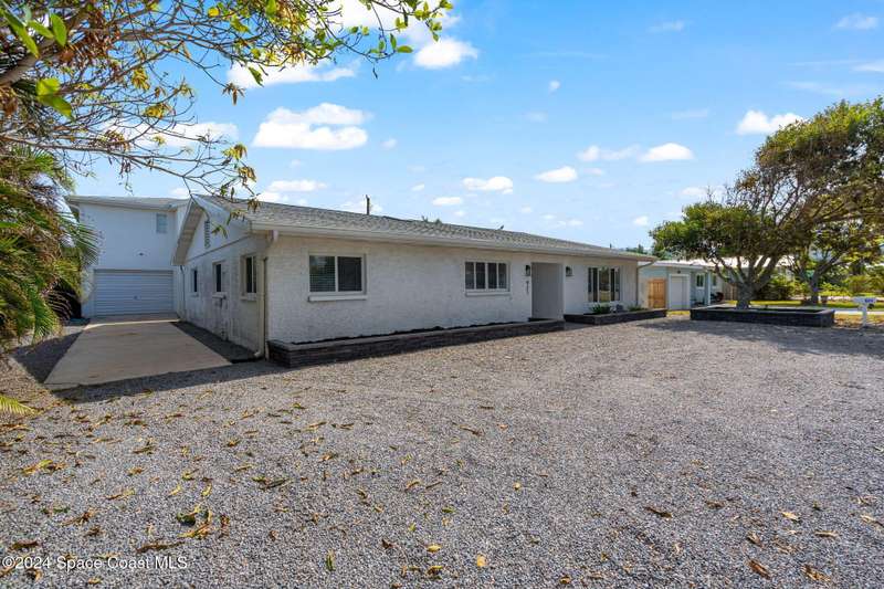 The perfect opportunity for beachside living less than 1 mile to Downtown Cocoa Beach and a short stroll to the ocean. This pool home features a 5 bedroom 2 bathroom main house with a 1 bedroom 1 bathroom, 700 sq ft guest apartment with full kitchen over the garage. The spaces are licensed Short Term Rentals and provides fantastic monthly income. Recent updates and standout finishes include a newer roof, HVAC, stone counters, new flooring throughout, stainless appliances, huge kitchen island, a shiplap accent wall, crown molding, a resurfaced pool, fencing, the list goes on. In addition to the driveway up to the garage there is ample graveled parking in front of the home. Minutes to area shops and restaurants, Cocoa Beach is a dream destination and perfect town for investment. Currently a top 10 rated surf town in the world, you'll never want to leave.