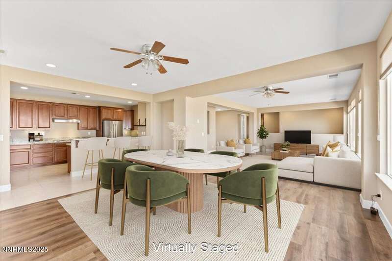 Some of the BEST VIEWS and elevated living with special financing rates are now available - you will find it all above the fray in the University Ridge community, offering breathtaking views of Downtown Reno/Sparks and the Sierras beyond! Be sure to arrange your visit during the evening as the skyline and valley transform into spectacular views of city lights below and don't forget about the opportunities to experience multiple Independence Day fireworks shows and the epic Balloon Races. Seller has secured special financing rates and this amazing home qualifies for interest rates in the low 5 percent range with seller closing cost assistance. Starting from the private front entrance vestibule, this expansive 3,770sf home provides ample space to host special gatherings or simply enjoying large family get-togethers with ease, effortlessly flowing with its abundant natural light, from the spacious main level great room, adjoining kitchen, to the extensive rear deck. Additionally, the separate lower-level walk-out/day-light basement features a central gathering room, considerable storage space, and a large paver patio for extended outdoor activities. Both levels offer commanding views of Northern Nevada's natural 4-season beauty, which reminds us of why we call this home. The entertainer's kitchen is equipped with stainless steel appliances, pull-out cabinetry shelves, a breakfast bar, breakfast nook, and opens to the spacious great room with a fireplace and built-in niche. The large primary suite gets bathed in glorious morning sunrises, includes access to the rear deck with stunning views, a large garden tub with an adjoining shower, double vanities, and a walk-in closet. Notable features include one of the largest lots at .62acres, substantial storage space on the lower level to tuck away any holiday items or could be the perfect wine cellar for any wine connoisseur. Enjoy any season with dual HVAC systems, an oversized laundry/mud room that can accept gas or electric dryers, and a finished garage with sealed floors. Your home is just a quick walk to the neighborhood park and offers easy access to dining, shopping, and reputable schools, and major highways. Truly a special home with its 6 bedrooms, 3.5 bathrooms, 3-car garage, and for any of life's adventures... your search ends here.