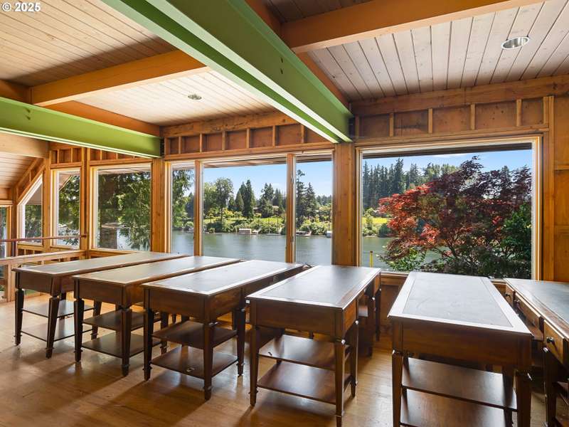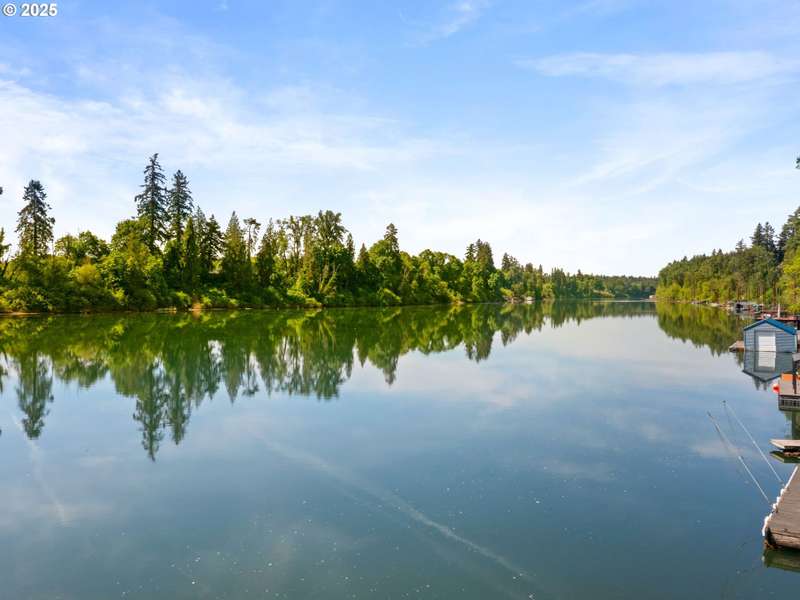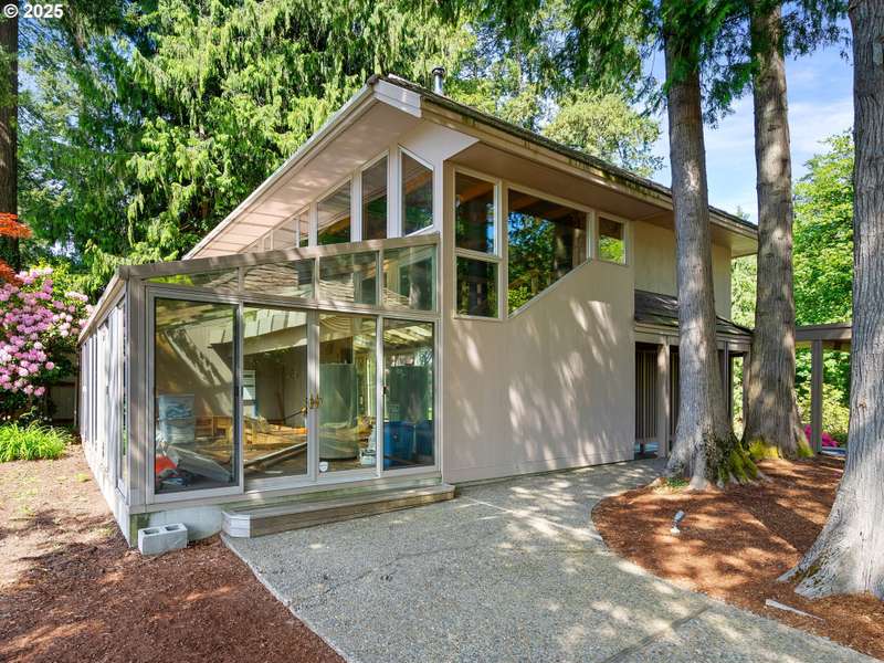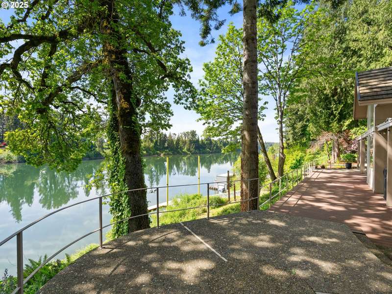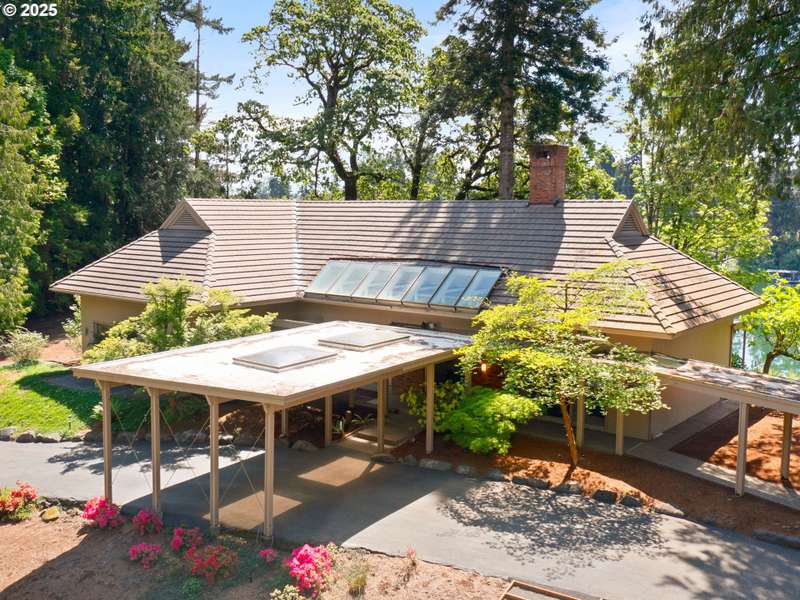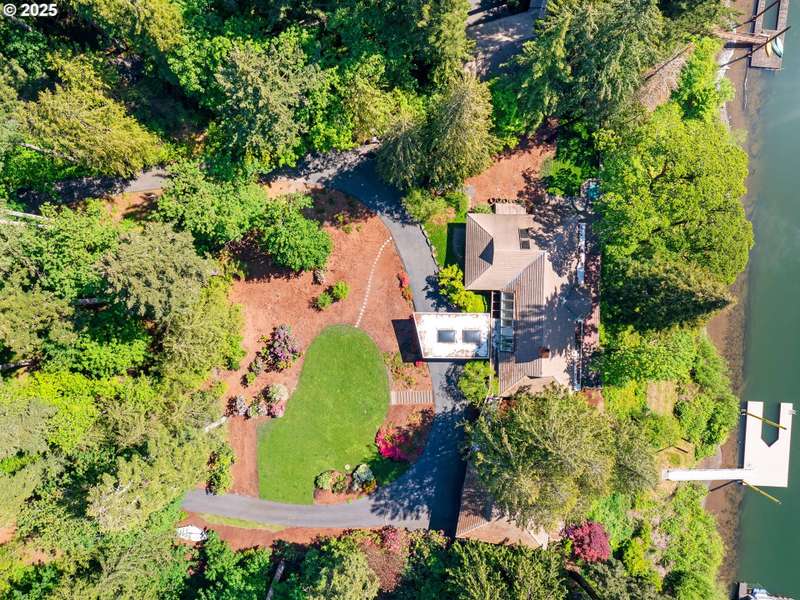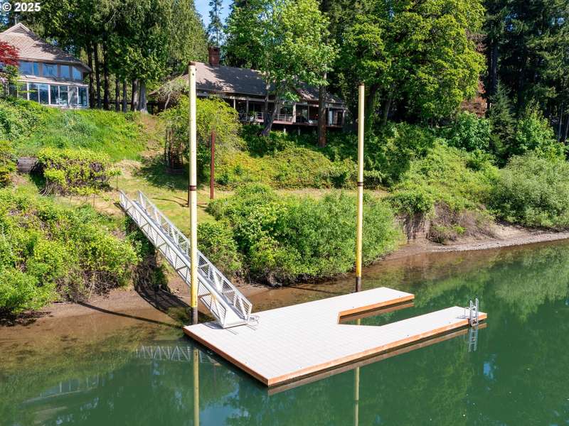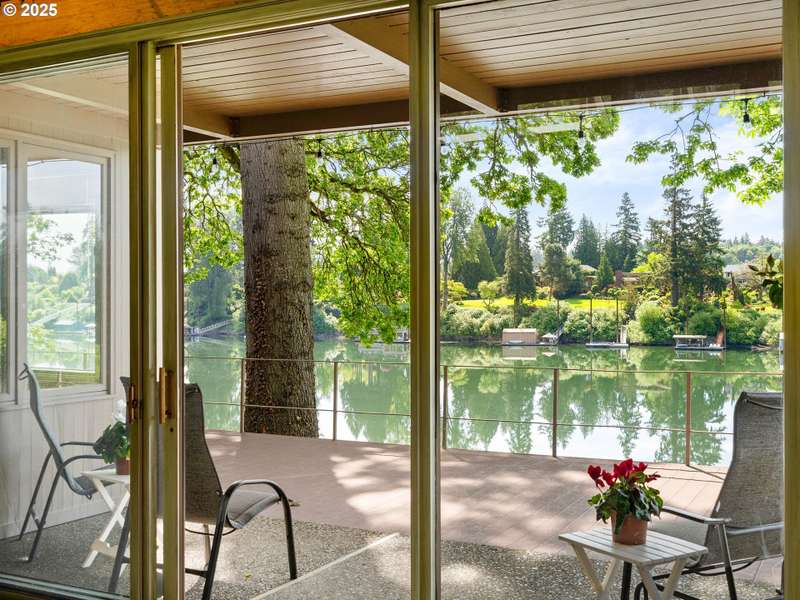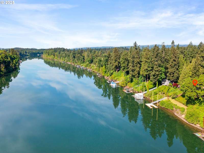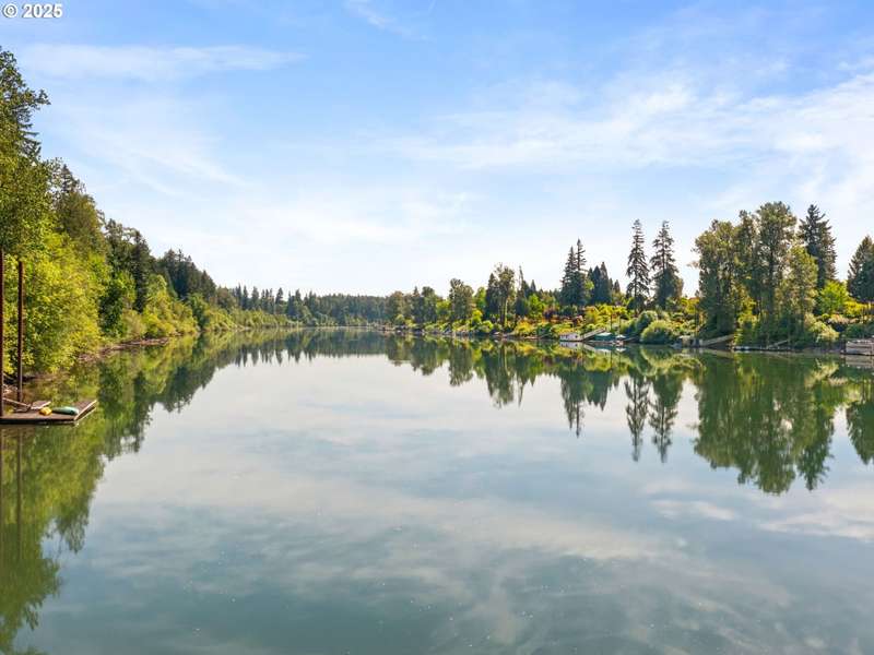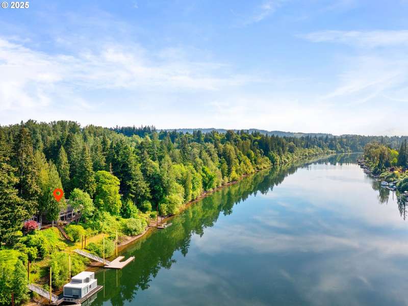 Introducing an extraordinary riverfront sanctuary—232 feet of pristine river frontage on nearly two acres of Oregon’s most enchanting landscape. This untouched mid-century modern gem is designed to bring the outdoors in, with dramatic floor-to-ceiling windows and soaring ceilings that flood the home with natural light. A single-level layout offers expansive living, while multiple decks and terraces invite seamless indoor-outdoor flow. The property’s mature trees, manicured gardens, and curated grounds create a sense of timeless serenity. The 1,100+ sq ft new dock with coveted southern exposure is ideal for grand entertaining or quiet reflection.Whether envisioned as a multigenerational estate or a private retreat, the potential is as vast as the views. An additional unfinished guest quarters or ADU potential, offers flexible living space. Tucked just minutes from the Town Center and top-rated schools, this home offers rare privacy without sacrificing convenience. A once-in-a-lifetime opportunity to own a piece of riverfront paradise. Properties like this are seldom available—come and experience the heart of the Pacific Northwest in its purest form.