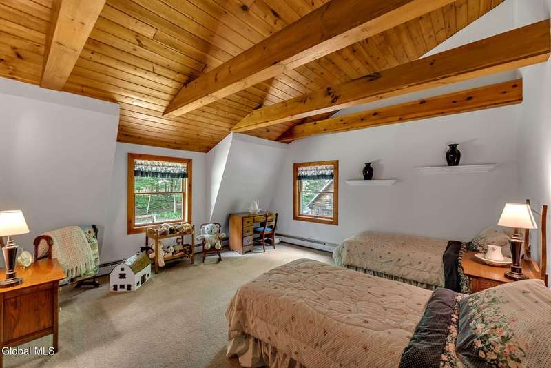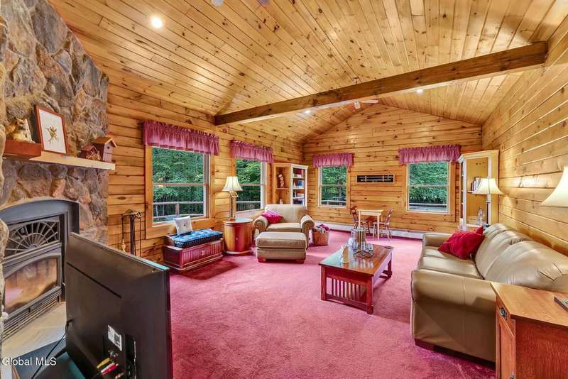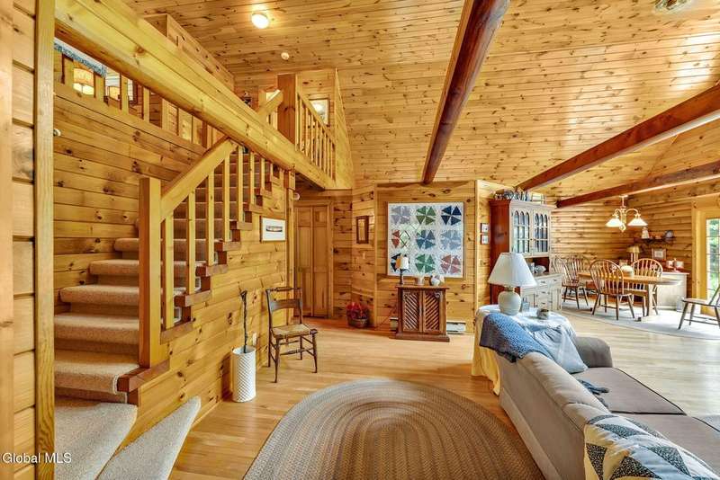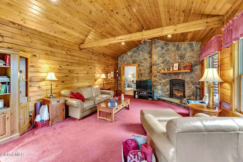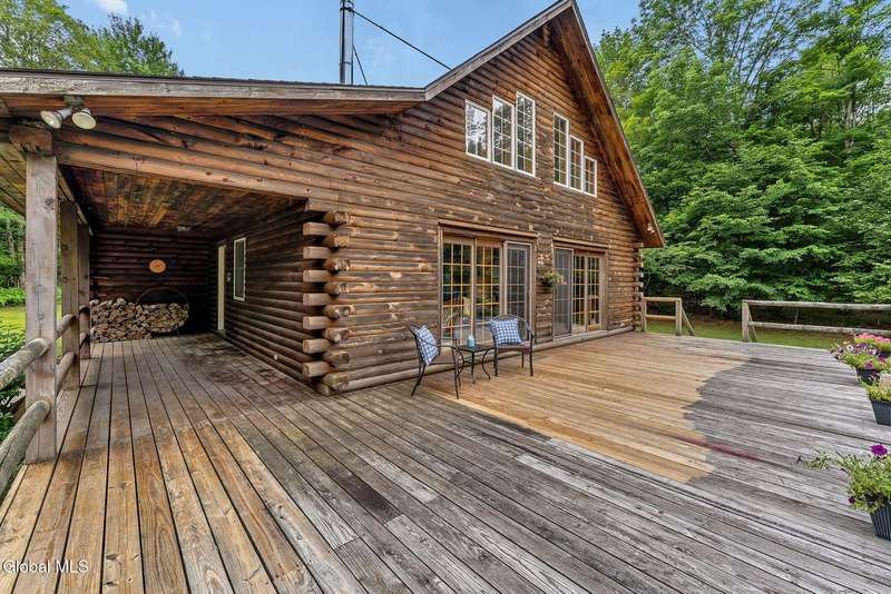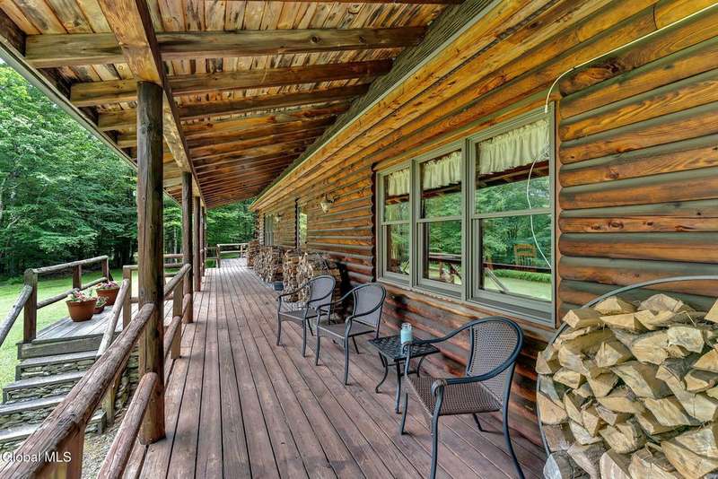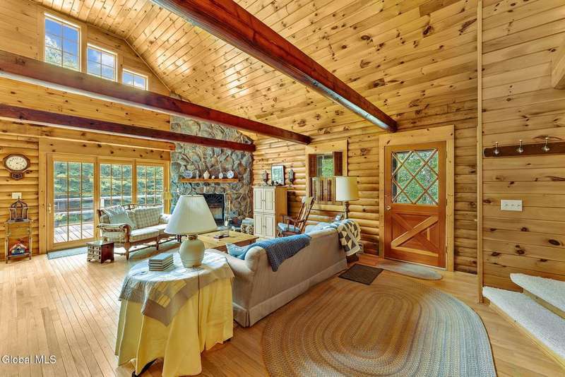UNIQUE PRIVATE SECLUDED, these TWO BEAVER MOUNTAIN LOG HOMES have been a fulltime family residence for years. On 50 acres, they have individual systems for septic, well, and underground electric. Main house is approx 3796 SF. Spacious first floor includes living room/library, a formal dining room, the eat in kitchen, half bath, and small office. Also off the kitchen is a laundry/ mud room with ingress/egress from outside. Continuing to the opposite end is the large family room. Upstairs is a large master suite with ensuite bath and 3 more bedroom and a full bath. The second log is appox 2432 SF. The main floor is comprised of an open concept cathedral ceiling living room/dining room with stone fireplace (wood) and sliders leading out to the deck. 2.5 hours from NYC and an hour from Albany