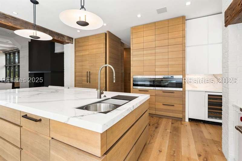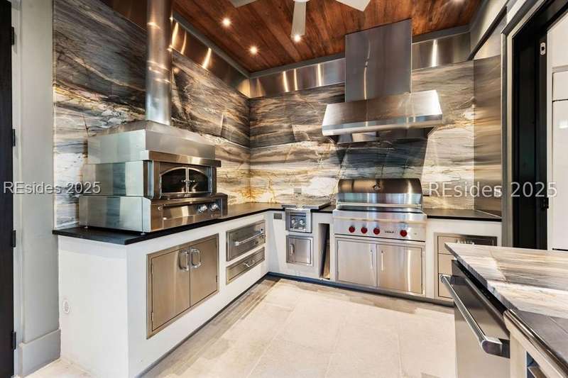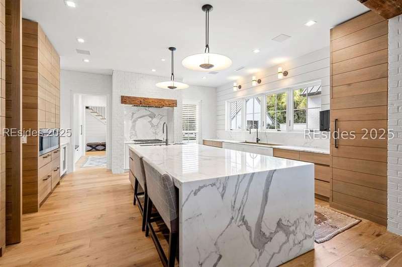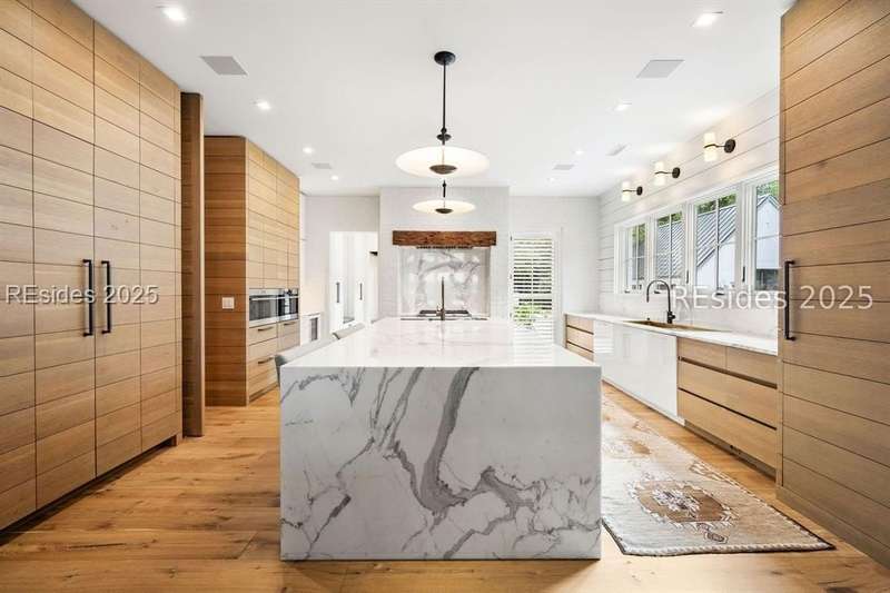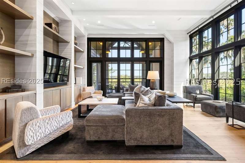 Welcome to 115 Mount Pelia--an award-winning, private oasis tucked on the banks of the May River. With its winding drive and inviting courtyard entrance, including a koi pond, this home welcomes you in with stunning architecture and floor to ceiling windows showcasing the sweeping waterfront views. The main floor features the ultimate chef's kitchen with a large island, work sink and entertaining sink, warming drawers, oversized Wolf range and built-in SubZero refrigerator and freezer. The scullery provides additional work space, sink and refrigerator, while the full back kitchen is stocked with pizza oven, grill, sink, refrigeration and more. Just off the kitchen is a large dining space with fireplace and living space with views of the water. The main floor screened-in porch offers 180 degree views of the May River while featuring additional living and dining space and a fireplace. Also on the main floor, you will find a sprawling primary wing with a large bedroom and spa-like bathroom, both with breathtaking river views, plus a private office. Downstairs provides additional living space with gorgeous views of the water, a game room, a media room, a wine cellar, a large exercise room plus sauna, additional laundry and two guest suites. The screened-in porch that opens to the pool provides even more entertaining space with a dining area, sitting area and fireplace. The large pool is perfect for lounging or laps and the outdoor shower that connects to the indoor half bath provides guests the perfect spot to shower off after a day in the sun.With an additional guest suite over the garage that includes a large sitting area and kitchenette plus a separate guest cottage with an additional bedroom, bathroom and kitchenette, there is plenty of room for family and friends to have space and privacy while they share in the beauty of this property. Don't miss the ultimate Palmetto Bluff retreat in the highly sought-after May River Forest neighborhood!