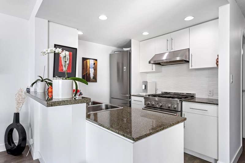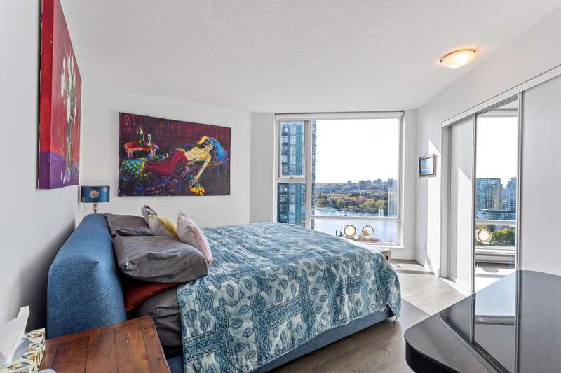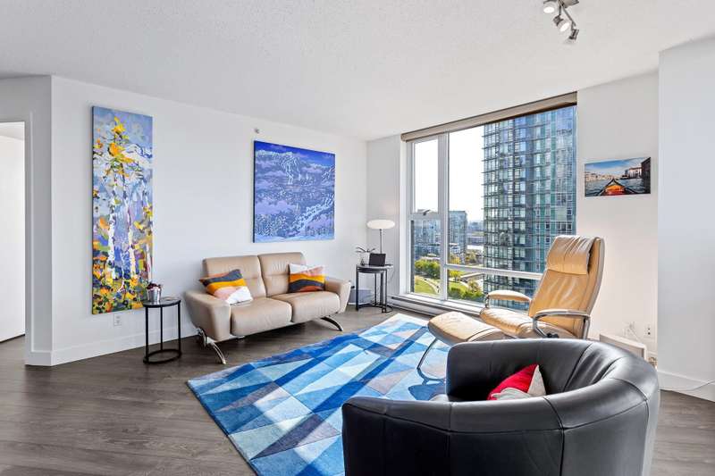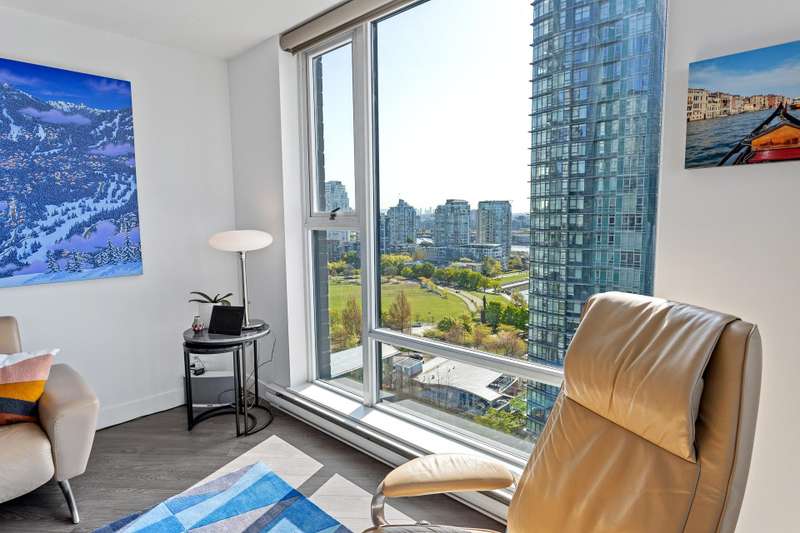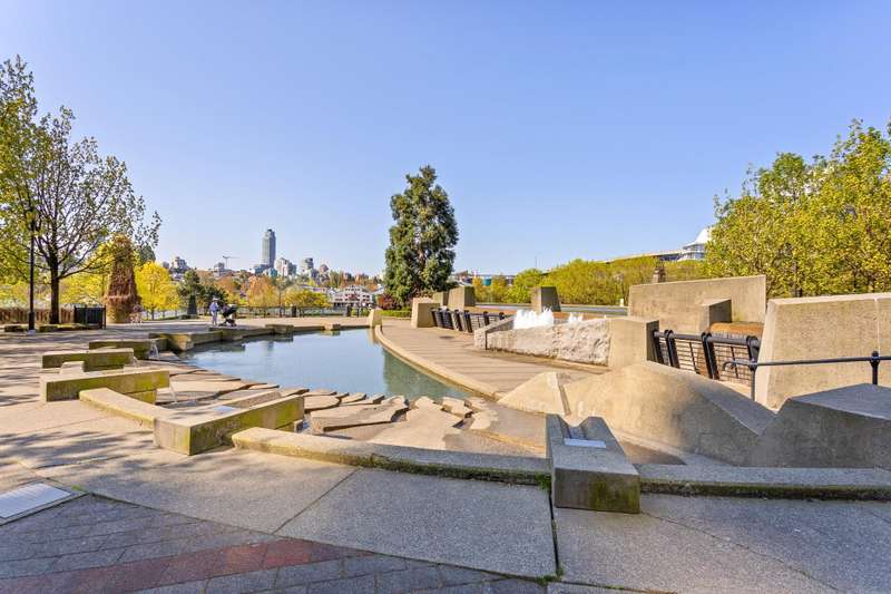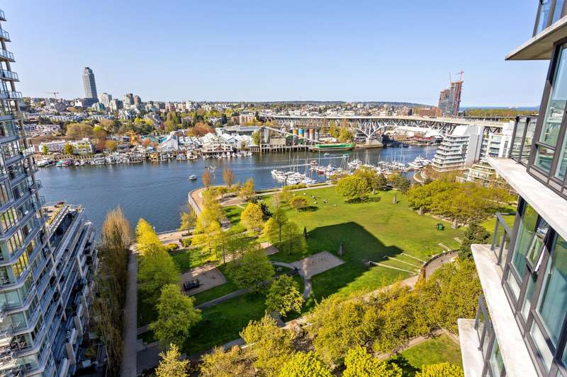 Amazing eye-level SE water views to stunning False Creek from all principal rooms! Sought after 2-bedroom + den corner unit w/view balcony at PARK WEST ONE overlooking George Wainborn Park. Floor to ceiling windows afford radiant splendor throughout the day! Air-Con in Living Room. Open concept seamlessly integrates living room, dining room & kitchen into one great area for entertaining! Modern kitchen upgrades w/Miele & KitchenAid appliances, new backsplash & quality re-finished cabinets. Spacious bedrooms, MBRM + entry closets with B/I California closets. World class resort amenities at CLUB VIVA feats full gym, swimming & swirl pools, 2 squash courts, 2 theatres, guest suite & concierge. Carefree Westcoast lifestyle living at its finest! Shared EV Charger. Easy to show. Viewing by appt.