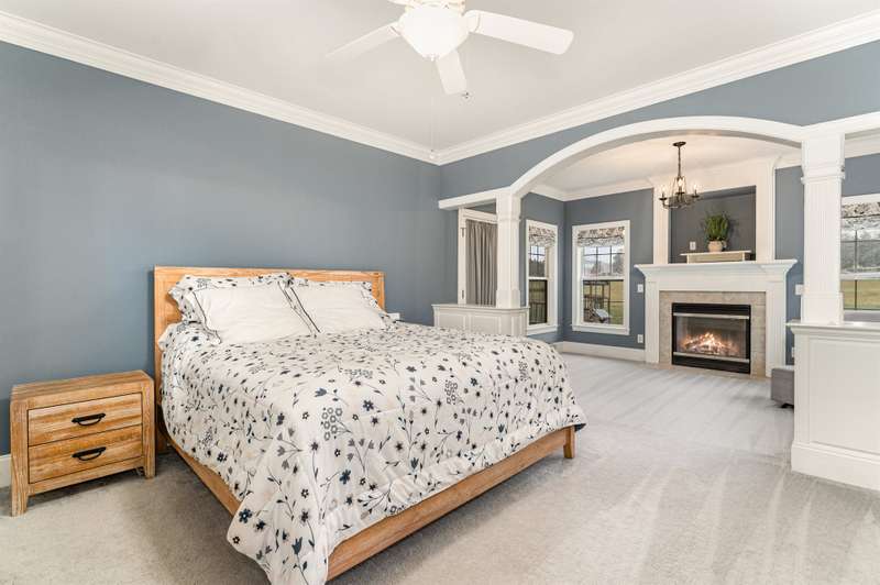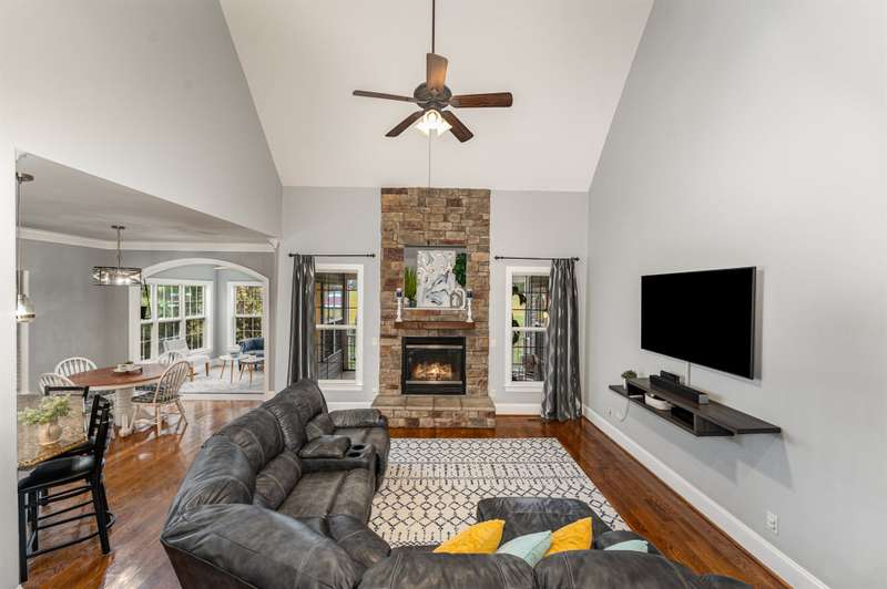 Welcome to this immaculate home, loaded with premium extras! Enjoy the luxurious architectural details, such as arched doorways and rounded corner sheetrock. The main level features a spectacular open-concept design, connecting the two-story den with a stone fireplace to the kitchen with updated appliances. The spacious kitchen includes a standard pantry plus a butler's pantry leading to the elegant dining room with a tray ceiling. Choose between the cozy sunroom or screened-in porch for your morning coffee.. Retreat to the massive primary suite, which boasts its own private sitting room with another fireplace. Four large bedrooms, excellent closet space, and walk-in attic storage ensure room for all. This home has solar panels to help lower your energy costs.Come see for yourself!