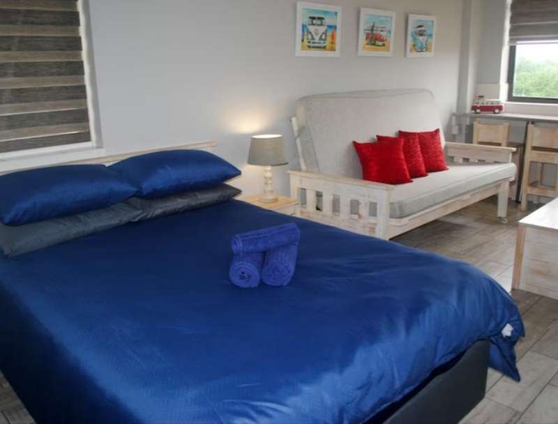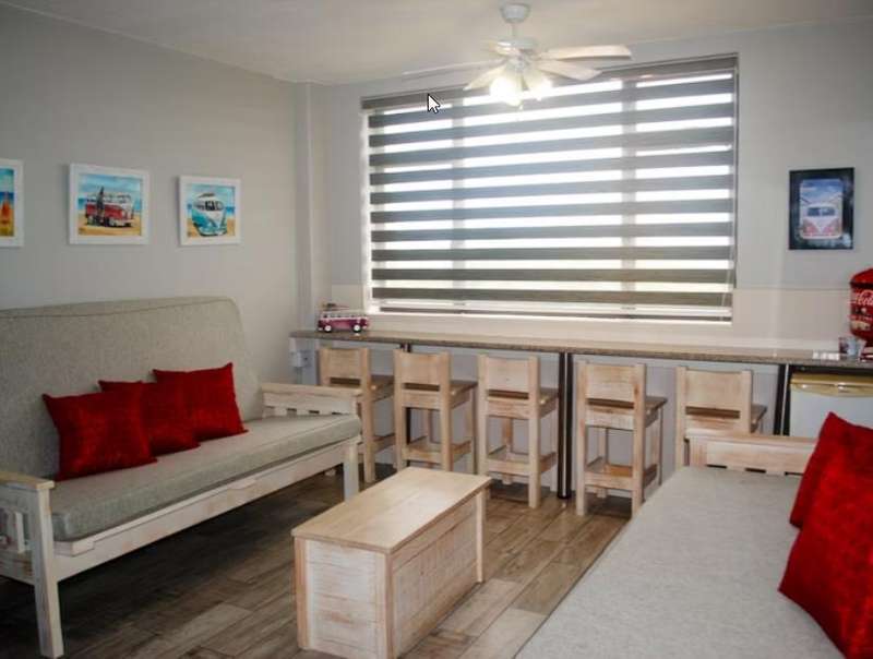 Welcome to your paradise retreat! This fully furnished, large bachelor holiday flat is the ultimate escape from the hustle and bustle of everyday life. As you step into this flat, you'll be transported back to the swinging 60s with its outstanding decor and colourful accents that bring an exciting atmosphere to your home away from home. The living area is spacious and open-plan, designed to give you the freedom and flexibility to enjoy your stay however you want. The lounge area is equipped with sleeper sofas, perfect for relaxing and watching a movie on the wall mounted flat-screen TV. The modern, well-equipped kitchen is a highlight of this holiday flat, featuring ample cupboard and counter space, an oven, hob, and extractor fan. All your kitchen needs are met in this fully equipped kitchen, making it easy to prepare snacks or cook delicious meals. The bathroom in this holiday flat is fully tiled and comprises a shower, toilet, and basin, ensuring that you have a comfortable and relaxing time while staying here. Aluminium windows let in plenty of natural light, and they've been thoughtfully designed to showcase the magnificent views of the ocean and dunes that will leave you in awe. The cleverly fitted counter top and bar stools, prove a comfortable place to sit and relax while enjoying your morning coffee and admiring the magnificent view. This bachelor holiday flat is the perfect destination for anyone looking for a private and comfortable holiday destination and makes for an ideal investment opportunity.