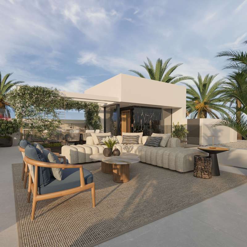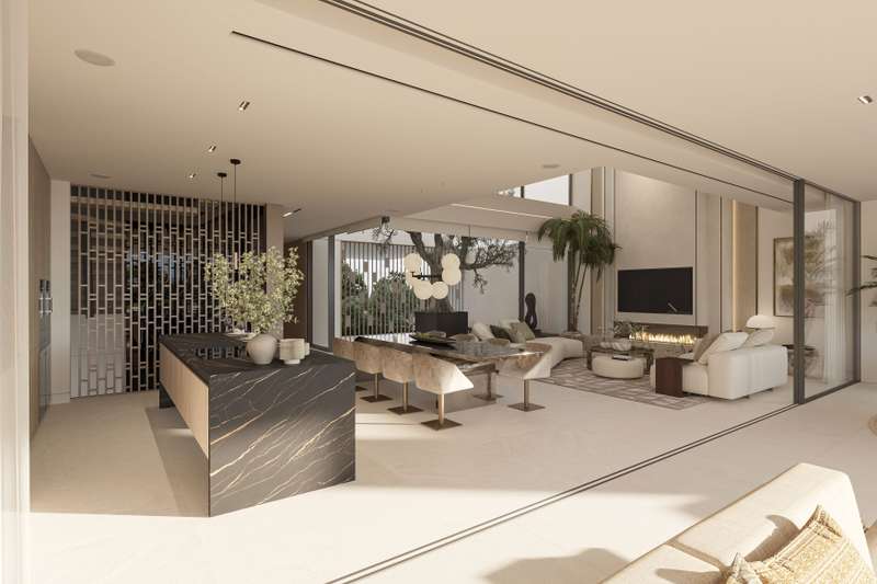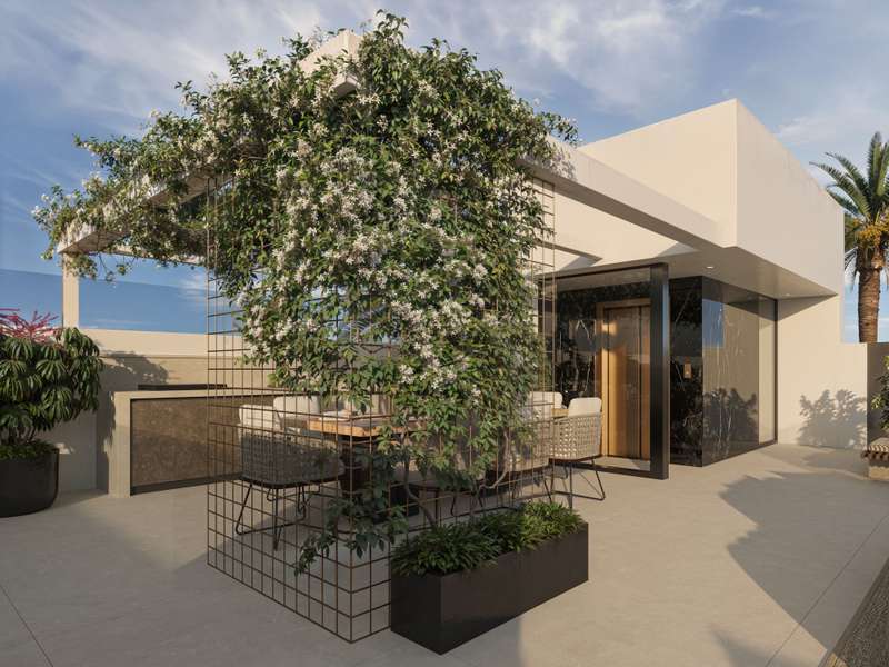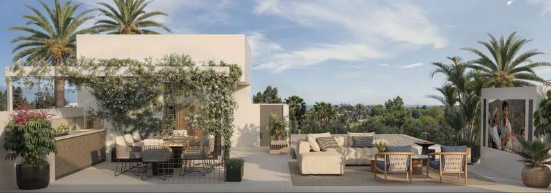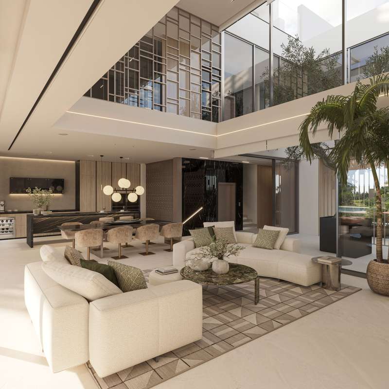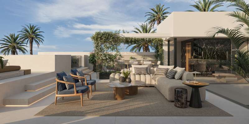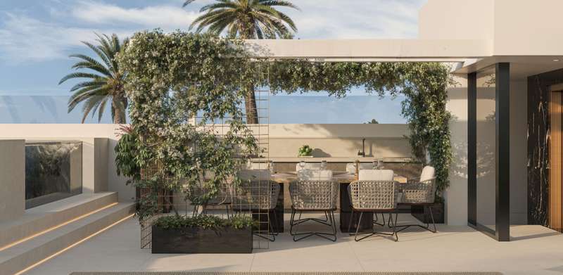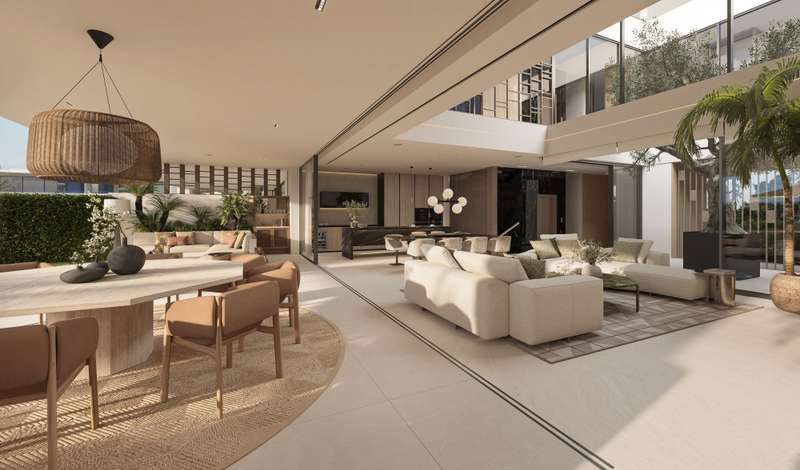 Welcome to this modern semi-detached villa in the Vilas 12 development – an outstanding project of luxury homes on Marbella's Golden Mile, where you can enjoy contemporary living at its finest. Inspired by the elegance of the Art Deco era, Vilas 12 combines refined modern aesthetics with sophisticated, clean lines. From the very first moment, you will be captivated by the meticulously designed gardens and the tranquil water feature, which set the mood for the exceptional experience ahead. This 4-level, 4-bedroom villa offers pure indulgence. The space is filled with natural light, seamlessly blending indoor and outdoor living areas. Floor-to-ceiling windows reveal stunning views of the gardens and the pool, while the rooftop features a luxurious pool, a solarium, and an open ...