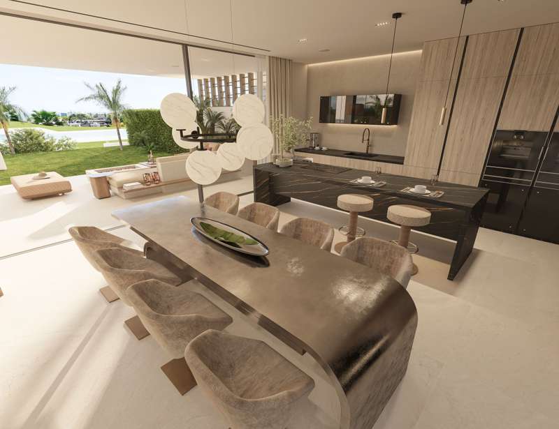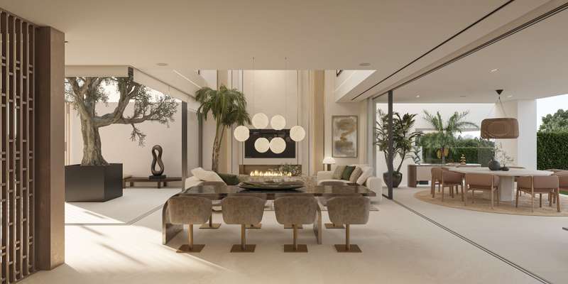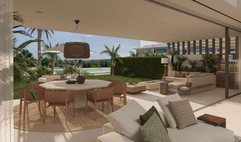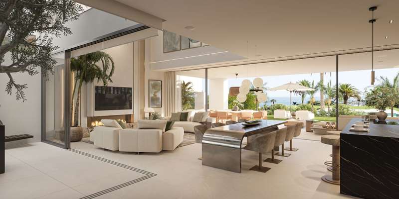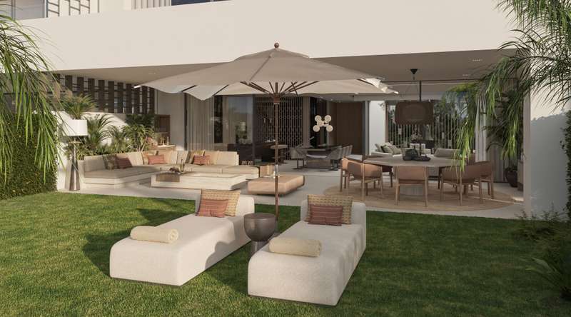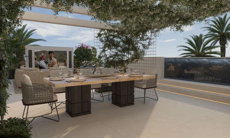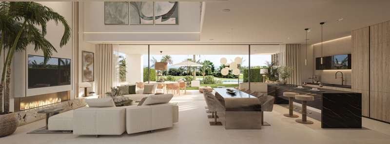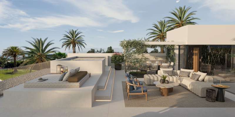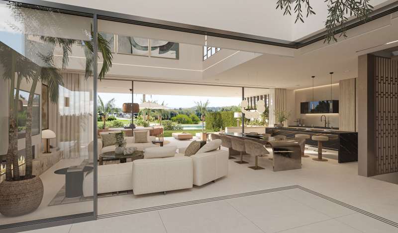 Welcome to this modern semi-detached villa in the Vilas 12 development – an outstanding project of luxury homes on Marbella's Golden Mile, where you can enjoy contemporary living at its finest. Inspired by the elegance of the Art Deco era, Vilas 12 combines refined modern aesthetics with sophisticated, clean lines. From the very first moment, you will be captivated by the meticulously designed gardens and the tranquil water feature, which set the mood for the exceptional experience ahead. This 4-level, 4-bedroom villa offers pure indulgence. The space is filled with natural light, seamlessly blending indoor and outdoor living areas. Floor-to-ceiling windows reveal stunning views of the gardens and the pool, while the rooftop features a luxurious pool, a solarium, and an open ...
