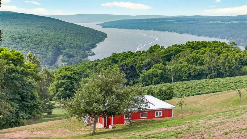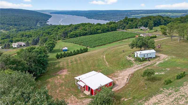 Wow! WHAT A VIEW! This 1.4 acre building lot is simply breathtaking! Plan to build your home here, overlooking KEUKA LAKE's West Branch and the surrounding hills and vistas! Very unique, one of a kind structure on site and ready to be enjoyed. The cabin area with a covered front porch takes in the incredible views while the back half of the structure creates room for your car, toys, or a great shop space. KEUKA LAKE STATE PARK BOAT LAUCH, the best on the lake, is at the foot of this grand hill and easy to access. Assessment and Taxes are estimates. Surveillance cameras are in use on the property. Please do not enter without Listing Agent on site.