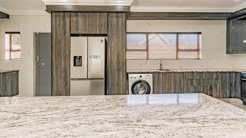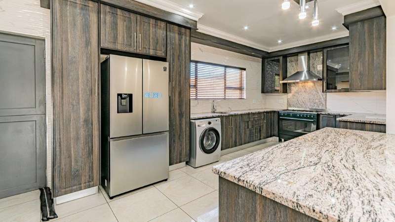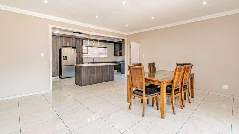 Welcome to this lovely family home featuring 4 bedrooms with built in cupboards, 2 bathrooms, a very spacious lounge, dining area, TV lounge, guest toilet, study and a huge open plan kitchen with gas stove and granite tops. The garden is spacious and very well kept with a swimming pool and pool net. There is an added bonus of 2 outside rooms, one with a bedroom, bathroom and kitchenette and a second room with a toilet, basin and shower - perfect for guests, an office for privacy or teenage pad. The second room was originally a sauna room and can be converted back to its original state. This home is complete with 2 garages and carport for 6 vehicles. A well secured property with an alarm system and security gates. Situated close to schools, shopping centres and much more...