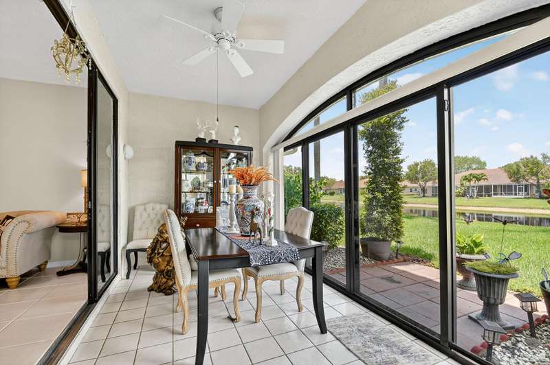 You found your home! Step into this bright and airy coach home, with views of the water from the glass enclosed Florida room. The kitchen is cheerful and light filled with white cabinetry with a large pantry. Living area is very spacious and versatile. Primary bedroom is large with a walk-in closet. The ensuite bath features a large garden tub and separate shower. The community boost a non membership clubhouse with plenty of activities, 3 pools, tennis, pickleball courts , fitness center, many clubs and more. All nestled in a lovely park-like setting. All close to shopping ,entertainment, restaurants and more. See it today! Enjoy the great Florida lifestyle!