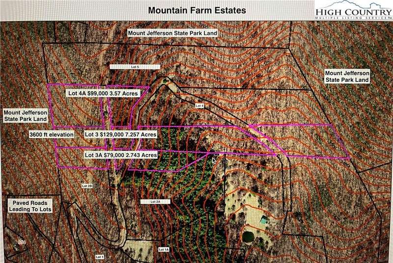 Long range mountain views less than 5 miles from downtown West Jefferson! Mountain Farm Estates is a small community of 9 lots offering big views at over 3600 ft elevation yet only minutes to downtown West Jefferson. With 3 sides of the development surrounded by Mount Jefferson State Park lands, there are protected views and privacy. Paved roads lead to all lots. This 7.3 acre lot has a gently sloping build spot with panoramic views and additional acreage to protect your views across the neighborhood. 1200 sq ft minimum to build with no modular or mobile homes allowed. Deeded access to a well located on Lot #4A.
