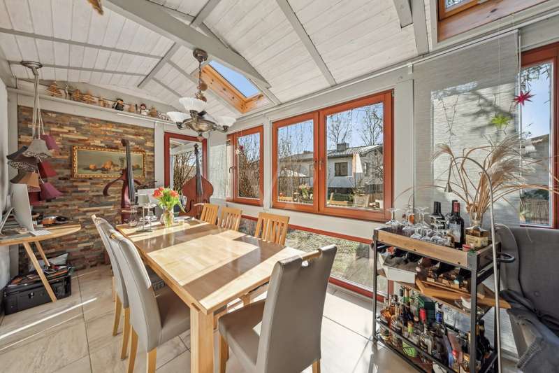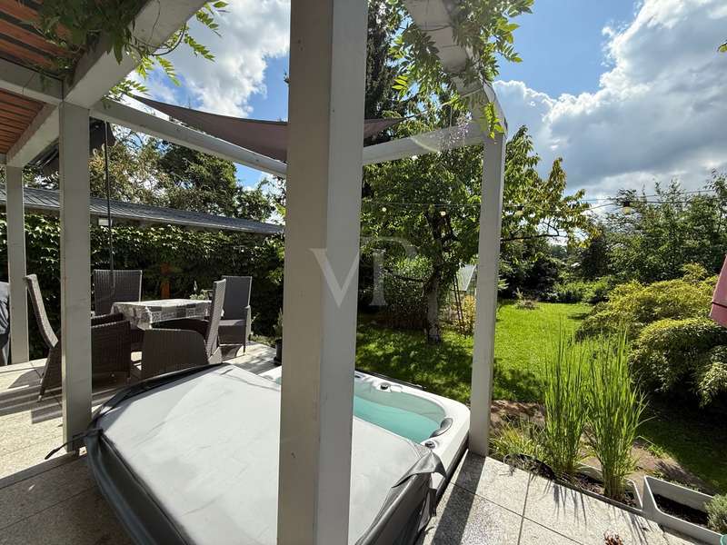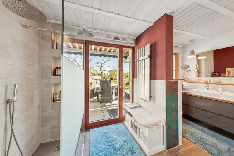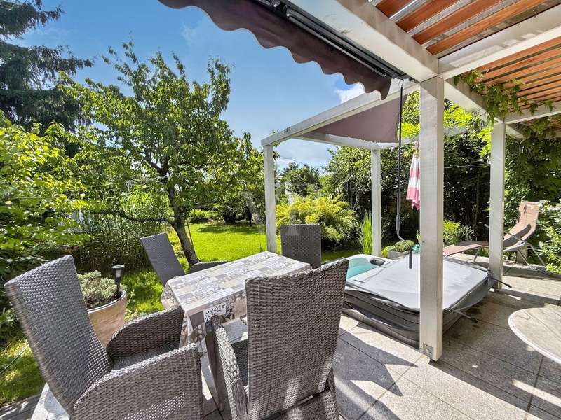This bungalow from 1983 impresses with its location in the countryside. With a living space of approx. 111 m², the house has 4 rooms. At the center of the house is a well-equipped kitchen, which is accessible from both the living area and the hallways. A light-flooded, heated conservatory and a modern bathroom with a floor-level shower and access to the terrace ensure a special feeling of well-being and comfort. The house has been continuously modernized and renovated, so that living here is contemporary and comfortable. A photovoltaic system was installed in 2017 and the heating system is based on an efficient central heating system. Underfloor heating in the conservatory and bathroom increase living comfort and a solar thermal system boosts energy efficiency. The fireplace connection in the living area can be reactivated if required. In the basement, which is accessible from the outside, there is a utility room with WC and a flexible room that can be used as a guest room, study or hobby room. The spacious plot of approx. 1,365 m² offers numerous amenities. A hot tub on the garden terrace invites you to relax, while garden lovers can enjoy a greenhouse and a pergola. Two terraces create additional retreats at any time of day and a fountain completes the garden landscape. The large double garage offers ample parking space and is already prepared for the installation of a wall box, making it easier to purchase an electric car in the future. It is also possible to park a motorhome. This bungalow combines sufficient living space on one level with an attractive outdoor area and well thought-out modernizations that guarantee contemporary living comfort. See for yourself and arrange a viewing appointment.