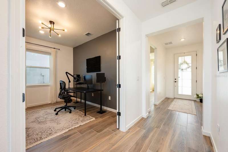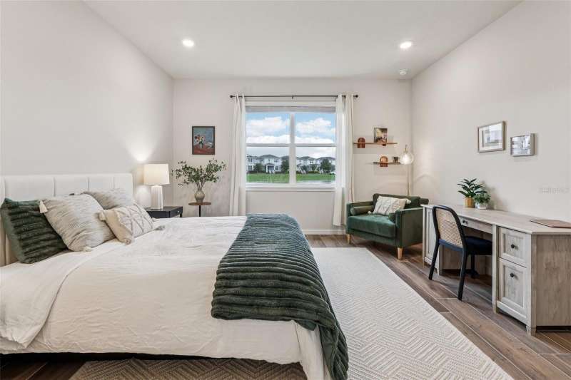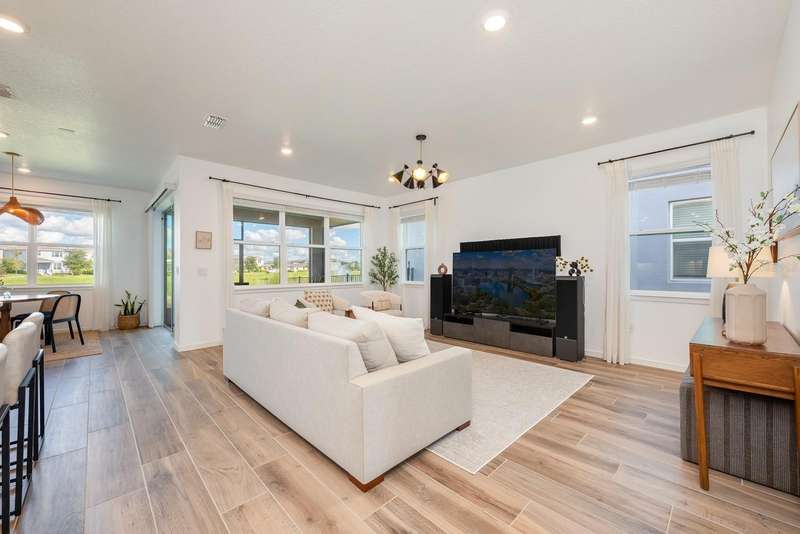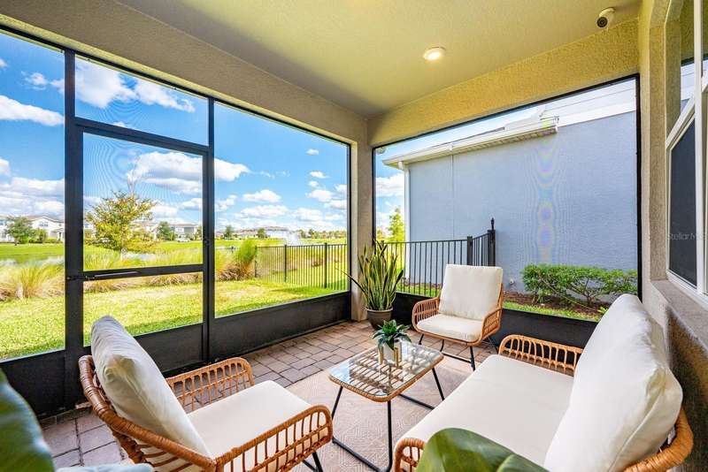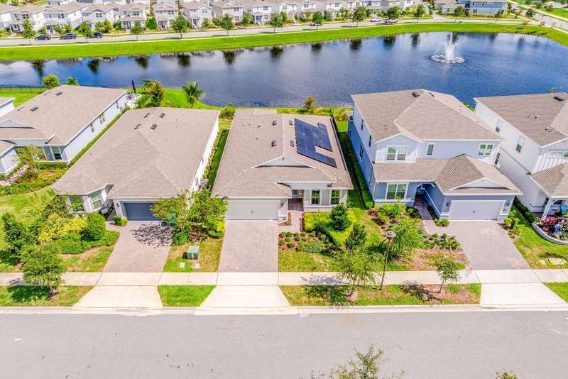 SKIP THE CONSTRUCTION DELAYS & unfinished communities -- this MOVE-IN-READY, SOLAR POWERED home in highly sought after, island style, Isles of Lake Nona offers LUXURY, PRIVACY, and a COMPLETED, GATED, RESORT LIFESTYLE--all just minutes from Lake Nona Town Center!! Perfectly positioned on a **CUL-DE-SAC** street with tranquil **WATER VIEWS** and no rear neighbors, this meticulously UPGRADED home has an impressive layout. Step inside to a light and bright **OPEN CONCEPT** layout with OVERSIZED WOOD LOOK TILE flooring, a fresh modern take on neutral color palette, and designer lighting and fixtures that create an undeniable stylish ambiance throughout. All 3 bedrooms are in separate areas of the home, offering plenty of privacy. Oversized french doors opening up to a 4th flex room- perfect as an office/den, hobby room or nursery! The chef’s dream kitchen is a true showstopper – featuring sleek QUARTZ COUNTERTOPS, gas cooktop, under cabinet lighting, built-in wall oven, and TOP OF THE LINE APPLIANCES, including a Samsung Bespoke four door French door refrigerator with Family Hub. The striking cabinetry and finishes are both elegant and timeless. You will enjoy indoor/outdoor living with a SCREENED LANAI overlooking the peaceful pond, and a pre-plumbed gas line ready for your dream Summer kitchen or grill setup. The HOA even takes care of the lawn care and landscaping making it easy to relax on the weekends and maintain CURB APPEAL year-round. This energy efficient **SMART HOME** comes fully loaded with a whole home **SOLAR SYSTEM**, providing annual energy credits even while powering your A/C and EV CHARGING daily. The garage is where you will find the dedicated EV charging station, and the TANKLESS WATER HEATER ensures endless hot water with maximum efficiency. BUILT FOR THE FUTURE, this home includes: Surround sound system with 5 ceiling speakers | CAT6 ethernet and telecom ports in multiple locations | TV media wall port in the family room w/ interconnect in-wall wire chase tube | Extra wireless router pre-wiring in kitchen and garage | Smart home features for added convenience | Maytag washer/dryer with WiFi capability. The concrete block construction, HURRICANE RATED ROOF, soundproof and storm-resistant windows, and wired ADT alarm system provide top-tier safety and durability. All this is located just one block from the **RESORT STYLE COMMUNITY POOL & AMENITIES**, and only minutes to Laureate Park, Medical City, **TOP-RATED SCHOOLS**, restaurants, and shopping – yet you are tucked away in a serene, quiet setting. Community perks include: Gated access, front yard maintenance, cable/internet, fitness center, tennis and basketball courts, pickleball, splash pad, playgrounds, and miles of peaceful sidewalks. **PREMIUM LOT. HIGH-END UPGRADES. ENERGY SMART LIVING** – this is more than a home – it is a lifestyle curated for comfort, health, luxury, and location. This home even qualifies for a lender provided RATE BUY-DOWN CREDIT!! Set up your tour and let us say WELCOME HOME!