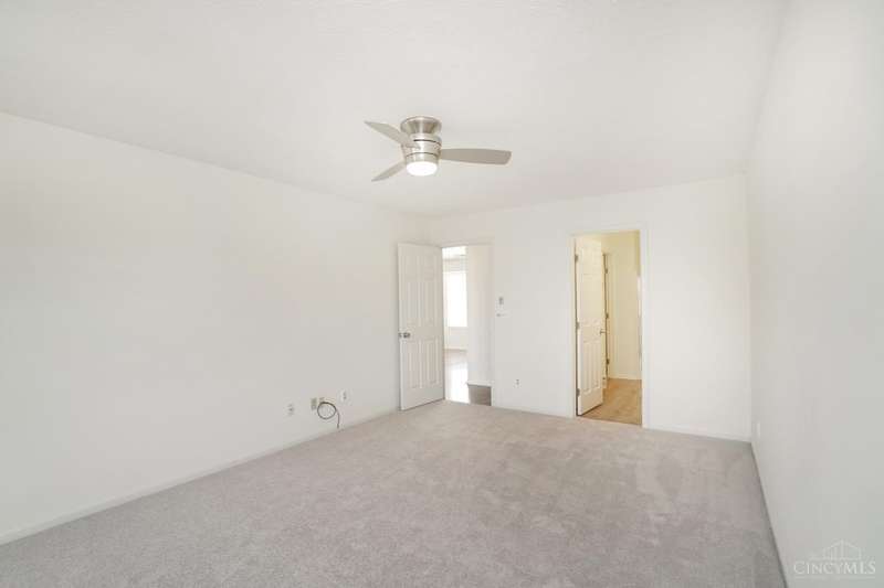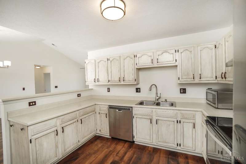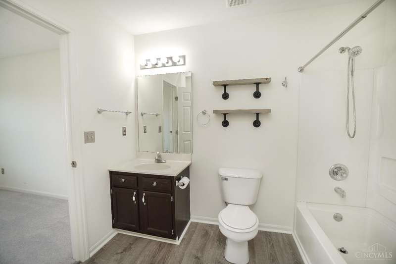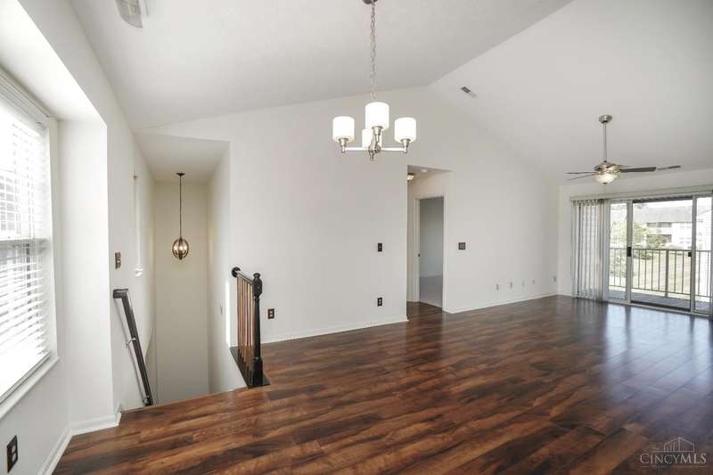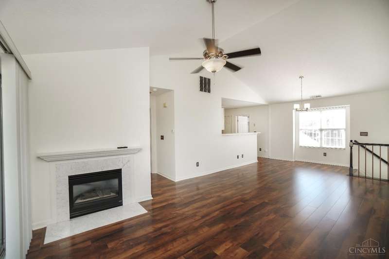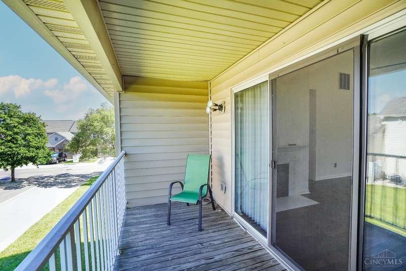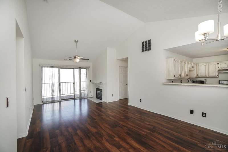 Freshly painted and move-in ready 2nd floor condo with private entrance and vaulted ceilings! 1,232 sqft. This 2-bed, 2-bath home features walk-in closets, new carpet in bedrooms, and easy-care laminate in living/dining areas. Bright living room with gas fireplace opens to a private balcony overlooking greenspace. Spacious kitchen offers ample counters and stainless appliances. Separate laundry room includes washer & dryer. 1-car attached garage. Enjoy the peaceful community with gazebo, plus easy access to I-71/I-75, parks, shopping, and dining. Immediate occupancy!