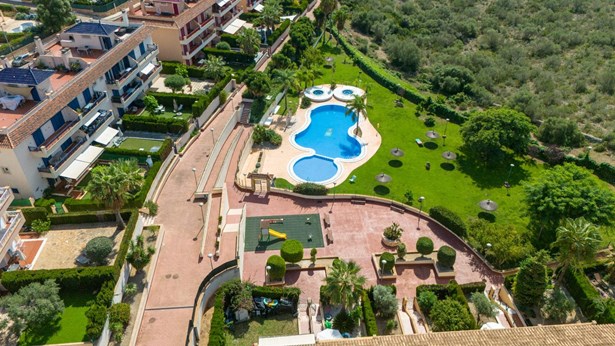 Located in Calas de Mallorca, this property is set within a quiet, well-maintained residential complex with exclusive access for residents. The area is known for its proximity to several crystal-clear coves, such as Cala Domingos and Cala Antena, all within walking distance. In addition, you’ll find restaurants, supermarkets, and essential services nearby, making it ideal as a permanent residence or a holiday home.~~The apartment offers 85?m² of built space (+95?m² private solarium), featuring a bright living-dining room with direct access to a terrace overlooking the communal pool and natural surroundings. The kitchen is independent, fully equipped, and includes a convenient adjacent laundry area. The layout is both functional and comfortable for everyday living or seasonal stays.~~There are two double bedrooms, one with an en-suite bathroom. Both rooms enjoy natural light and good ventilation, and the master bedroom has direct access to the terrace. Smart use of space and built-in wardrobes enhance practicality. A second full bathroom serves the rest of the property.~~The standout feature is the 95?m² private rooftop solarium, complete with outdoor kitchen, barbecue, and shower — ideal for enjoying the Mediterranean climate and panoramic views. The complex offers a swimming pool with jacuzzi, landscaped gardens, children’s play area, and spacious communal zones. An exterior parking space with restricted access is included.~~Highlights include aluminum double-glazed windows, split air conditioning, security door, fiber-optic internet, tiled flooring, and intercom system. The property is sold furnished and with a fully equipped kitchen.