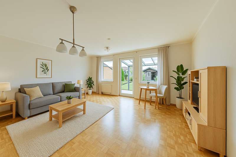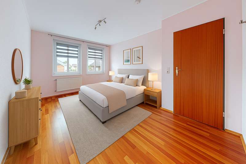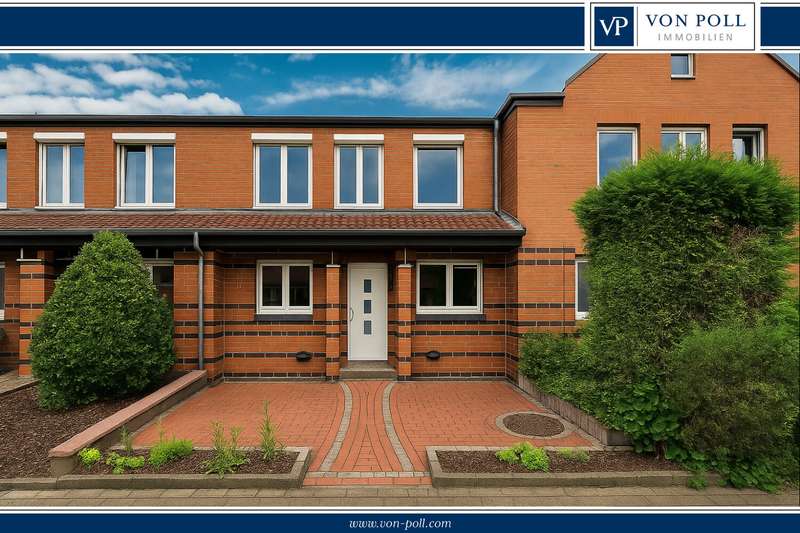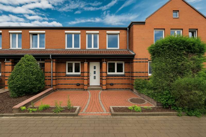 This well-kept mid-terrace house impresses with its solid solid construction, classic pitched roof and central location in Delmenhorst. The property has two floors and offers a well thought-out room concept with a total of four rooms on around 110 m² of living space. On the first floor there is a spacious living room with access to the terrace and garden. The kitchen is also located on the first floor and features modern fittings and a timeless look. This level is complemented by a guest WC, a practical utility room and a small checkroom in the entrance area. The upper floor comprises three separate bedrooms, which can be used individually as a master bedroom, children's room or study. A bright daylight bathroom completes the floor and creates additional living comfort. The exterior of the terraced house is also in a well-kept condition. The small front garden and the rear terrace with adjoining garden create a pleasant living atmosphere. A tool shed in the garden offers practical space for bicycles or garden tools. There is also additional storage space in the roof area. The house also has a garage, which offers a secure parking space for your vehicle. The property is heated by gas central heating. With its clear layout, three fully-fledged bedrooms on the upper floor, additional utility rooms on the first floor and outdoor areas, this house offers a comfortable home in a central location in Delmenhorst.