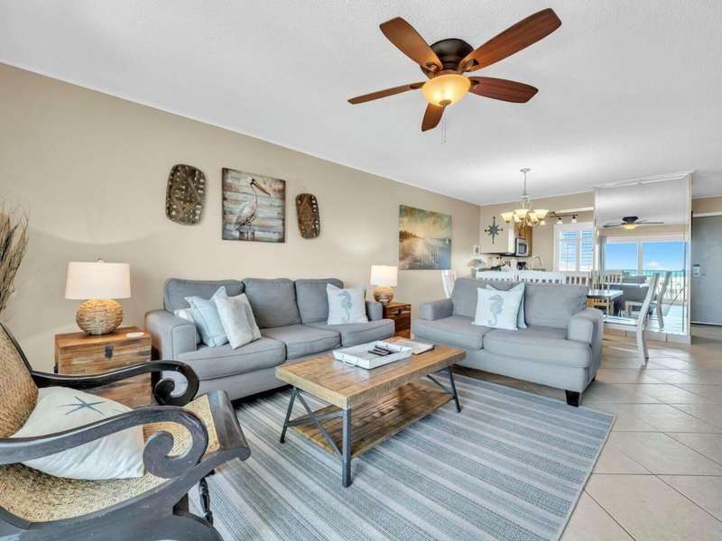 Penthouse! 2 Bedroom 2 Baths at The Islander. The perfect location in Destin, Florida on prestigeous Holiday Isle. The beach is just steps away! The views of the Gulf as well as Destin's East Pass are gorgeous! Amazing sunets await you! This spacious unit on the 7th floor is perfect for a family vacation or a quick weekend at the beach!. The condo development is quiet, family oriented, and so relaxing! Lovely decor with a beachy flair! New HVAC 2023, as well as new hot water heater, new bathroom vanity, new family room 55'' TV, new king size mattress in primary, new twin mattresses second bedroom! Excellent location- close to restaurants & shopping. Your penthouse beach getaway is waiting for you to arrive, and not ever wanting you to leave! Enjoy the beach!!