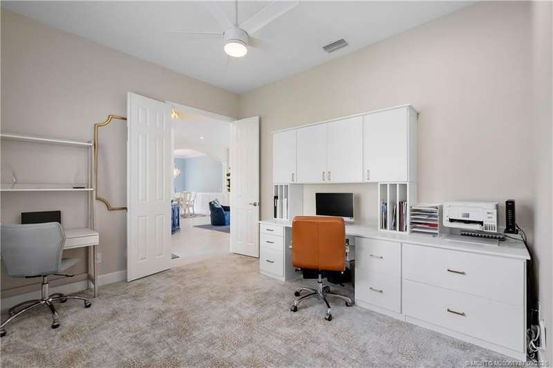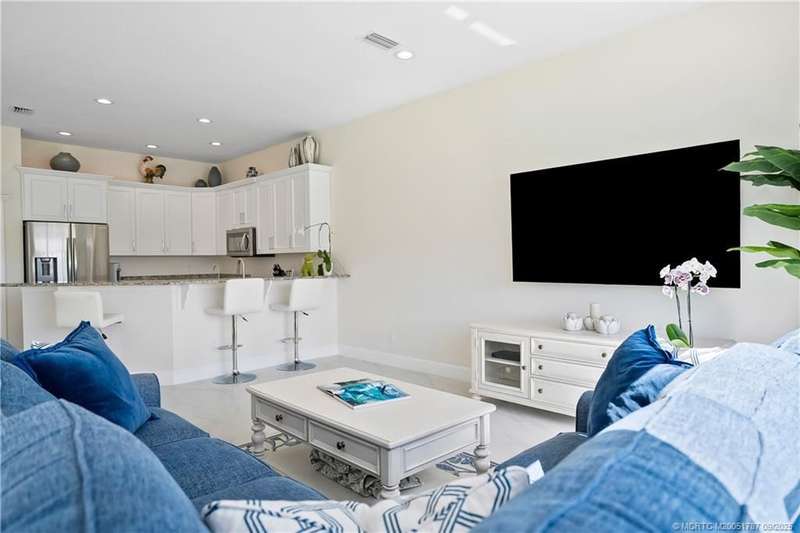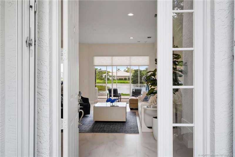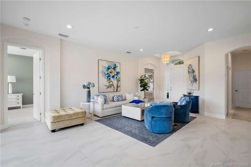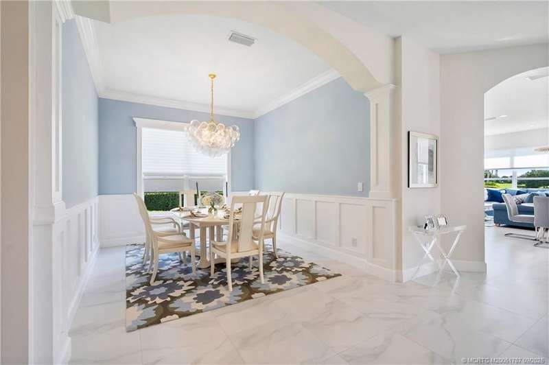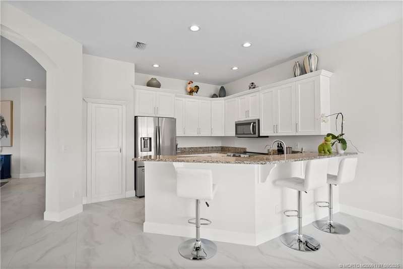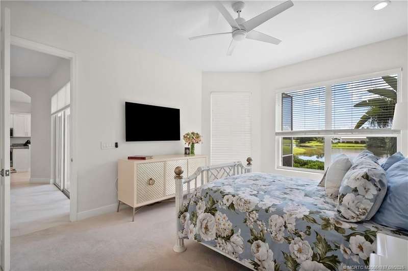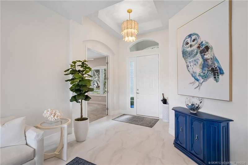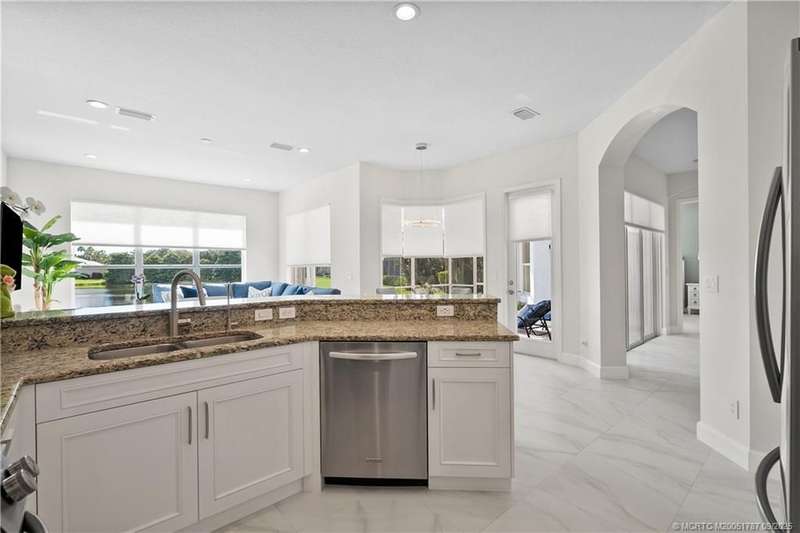 Renovated 3??D/2B?? home w??th ?v?r????z?d 2-car garage plus b?nus ??pace for golf cart or storage. Roof 2021. Elegant double tray ceiling entry, arched walls, wainscoting in formal dining, upgraded chandelier, and crown molding. Gourmet kitchen with 42 solid wood cabinets, crown molding, soft-close drawers, granite counters, tile backsplash, new range, and newer appliances. 10-ft ceilings, 8-ft doors, and arched entryways throughout. Abundant light from custom 76 windows with remote blinds in common areas. Walk-in closets in all bedrooms; primary suite and main living areas enjoy beautiful lake views. Updated landscaping on oversized lot, upgraded recessed lighting, screwless electrical plates, and extensive custom upgrades to office/third bedroom. Walk or bike to the country club-membership optional. HOA covers cable, high-speed internet, lawn care, and more for easy living year-round.