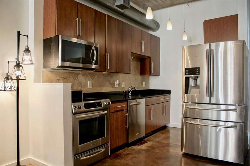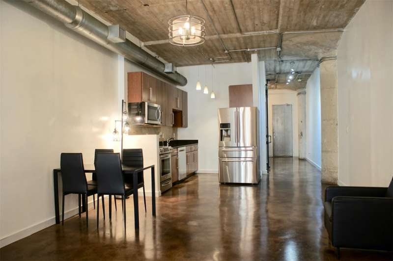 Great downtown location just steps from the ATT Discovery District and walkable to many businesses, restaurants and entertainment venues. Open floor plan allows for many layout options in your home. Very cool loft vibe throughout the properrty with exposed brick and concrete floors. Kitchen is complete with stainless appliances, a large laundry room that comes with full size washer and dryer and a huge bathroom. Other amenities include a a guarded entrance, a fitness center, a rooftop pool and a media room. Great price for a prime downtown location.