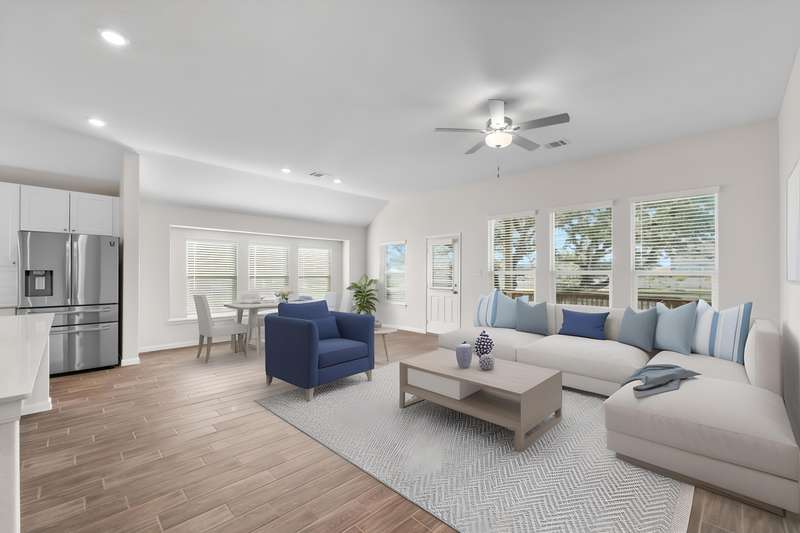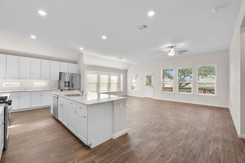 Built in 2023, this single-story home offers 2,213 square feet of beautifully designed living space with a split floorplan that combines comfort, style, and function. At the heart of the home, the gourmet kitchen shines with stainless steel appliances, a gas range, a generous walk-in pantry, and an oversized island perfect for gathering. Recessed lighting and tall ceilings highlight the space, while abundant cabinetry ensures plenty of storage. The open layout flows seamlessly into the dining and living areas, where natural light pours in. Thoughtful touches like window seating in various areas of the home create cozy spots to relax or read. The private owner's suite is a retreat of its own, featuring vaulted ceilings, a spacious walk-in closet, and a spa-like bath with dual vanities and a walk-in shower complete with a built-in bench. Three additional bedrooms are positioned on the opposite side of the home, offering comfort and privacy for family or guests, while the flex room provides endless options -perfect for a home office, playroom, media room, or workout space. Fresh paint and updated ceiling fans add a move-in ready touch, while the extended covered patio opens to a backyard with no rear neighbors and a side easement for extra privacy. A two-car garage, masonry exterior, and generous storage throughout make this home both stylish and practical. Living in Hidden Trails means more than just owning a home -it's a lifestyle. Enjoy weekends at the community pools, mornings in the fitness and yoga studios, or evening strolls along miles of scenic trails. With playgrounds, a sports court, and a welcoming clubhouse, there's something for everyone. Add in quick access to Highway 46 and 281, and you'll find 6056 Draw Loop offers the perfect blend of convenience, community, and Hill Country charm. - 11/7/2025 8:15:16 PM