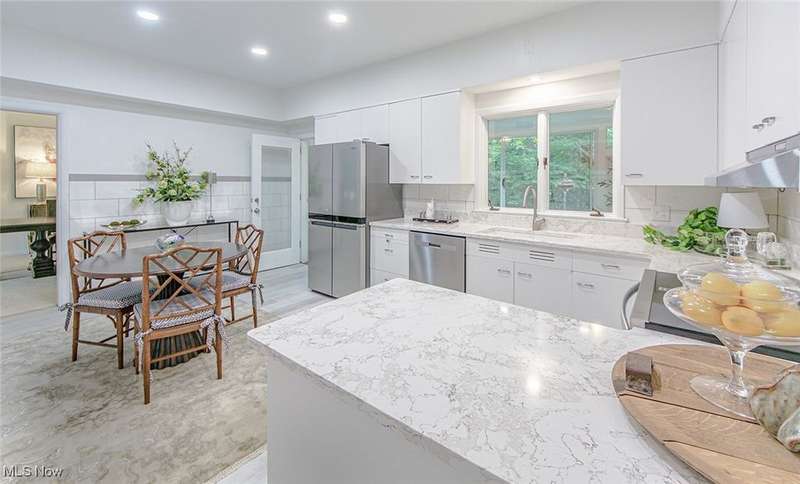 Beautifully updated brick Ranch in the sought-after Fairlawn Heights neighborhood! This spacious home features oversized rooms and ample storage, all within the convenience of one-floor living on a private corner lot with a rear-entry garage. Inside, large picture windows fill the expansive family room with natural light, while crown molding, updated neutral flooring, and fresh paint provide timeless appeal. The living room features a striking stone fireplace and flows into the dining area. The bright kitchen offers a combination of charm and modern pops with quartz countertops, updated flooring, and newer appliances. A sunny three-seasons room off the kitchen adds extra living space, and a huge laundry/utility room on the main level offers convenience. Three generously sized bedrooms and two full baths complete the first floor. The lower level includes another fireplace. Outdoors, the property offers both charm and privacy, while being conveniently close to shopping, dining, metro parks, and freeways. A perfect blend of classic character and modern updates?easy first-floor living in one of Fairlawn's most desirable communities!