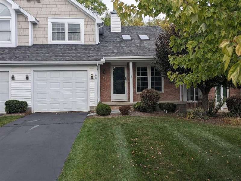 Motivated Seller! Don't miss this exceptional opportunity to own a beautiful townhome in sought after community in a quiet, desirable suburban community yet close to everything (RIT/University of Rochester/Marketplace mall)! This spacious 2-bedroom, 1.5-bath townhome features a stunning cathedral-style living room with skylights, a cozy gas fireplace, an abundance of natural light. You'll find the perfect blend of comfort, style, and low maintenance living. Many recent updates throughout (hot water tank, paver patio, garage door, sink, garbage disposal, some replacement windows), tons of storage! Virtual staging was used to showcase how your furniture could look in the property
