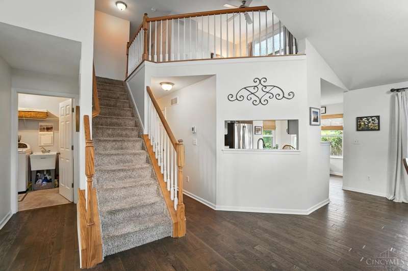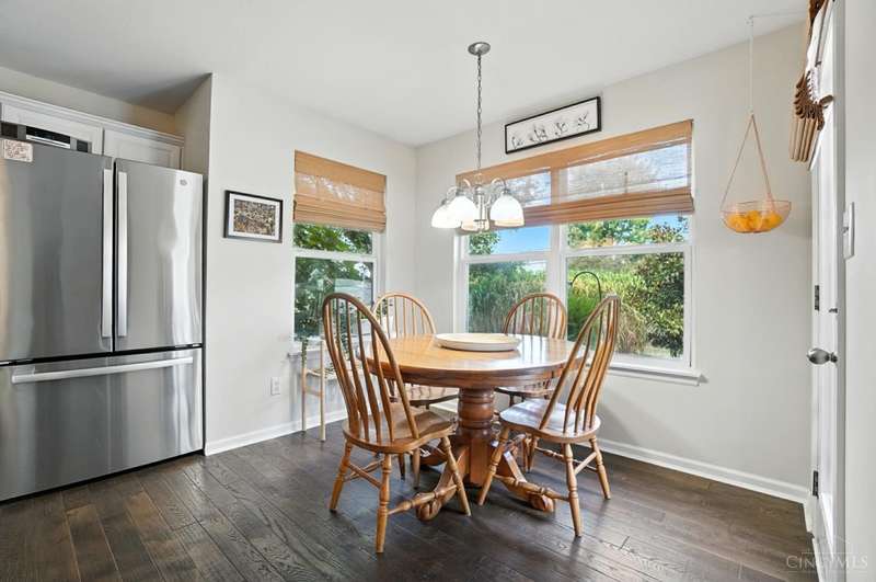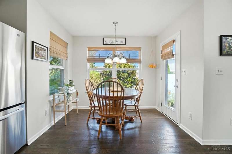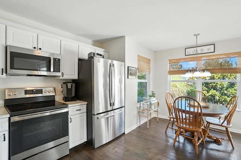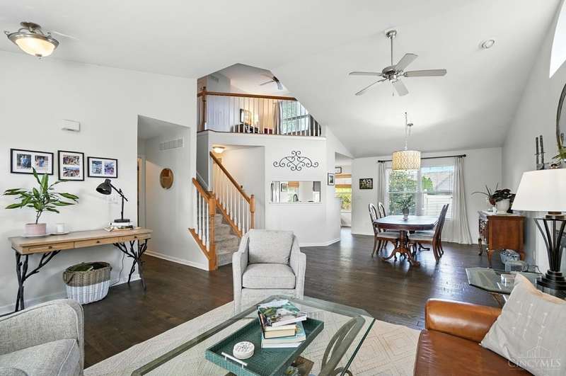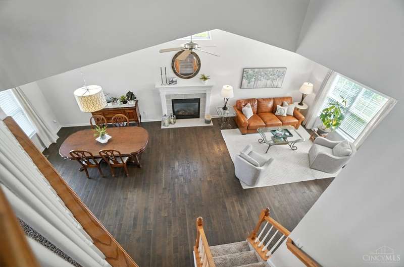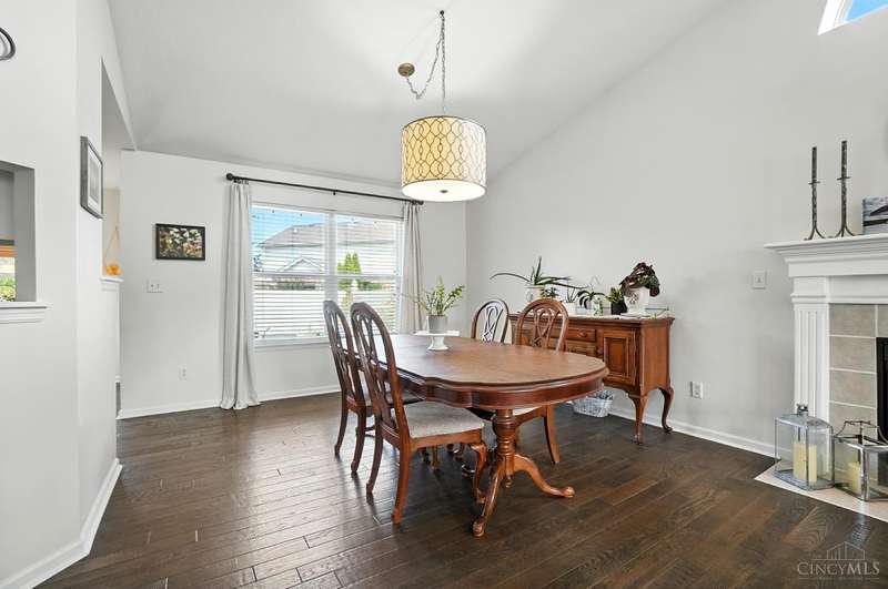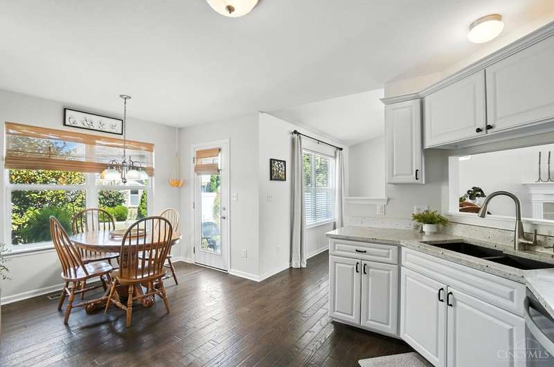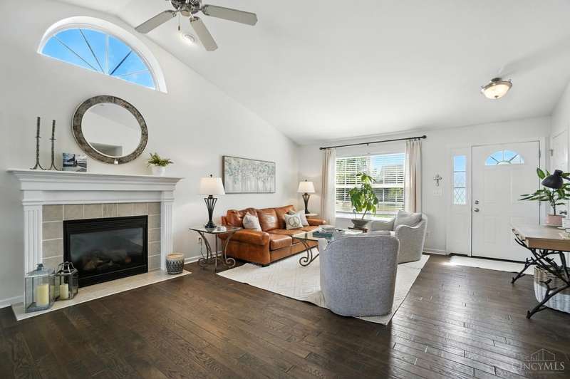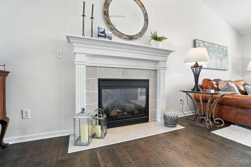 Meticulously cared for and beautifully updated home with 1st floor primary bedroom, updated white kitchen w/ granite countertops and SS appliances. Newer hand scraped hardwood floor throughout 1st floor. Cathedral ceiling and fireplace in living room/dining area. Walk out to a peaceful, private patio and fenced yard with extensive landscaping. Two bedrooms w/ full bath and loft upstairs. Walk to Endeavor Elementary. Lakota Schools - walking trails and ponds in neighborhood. Roof, furnace and a/c all 2022; Kitchen appliances 2020.