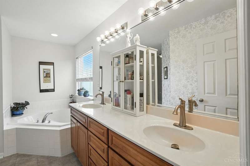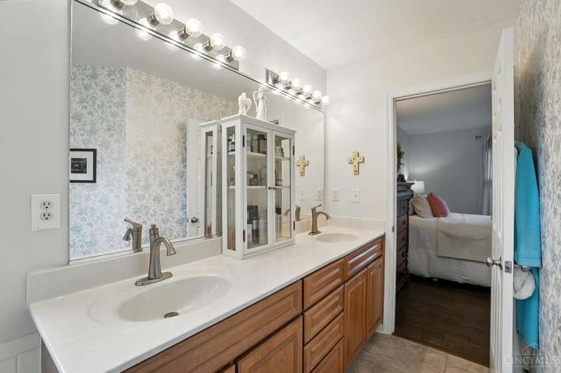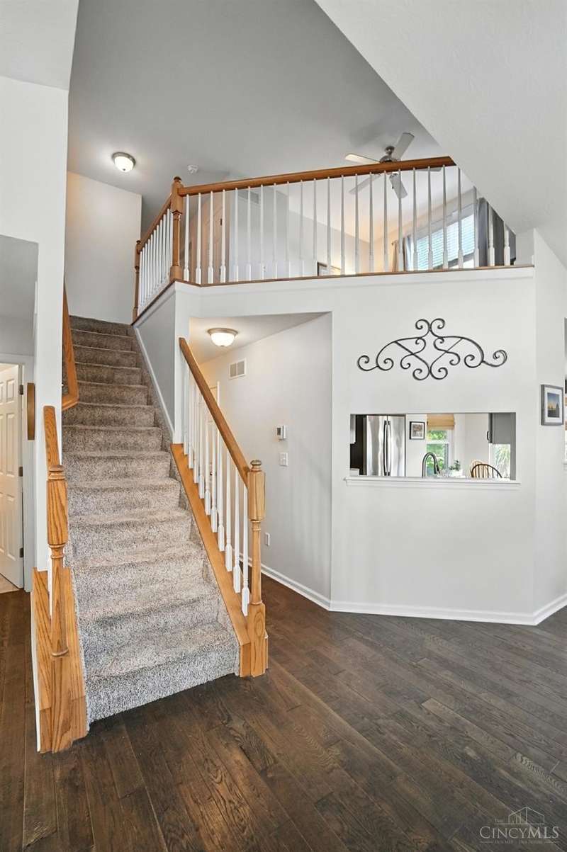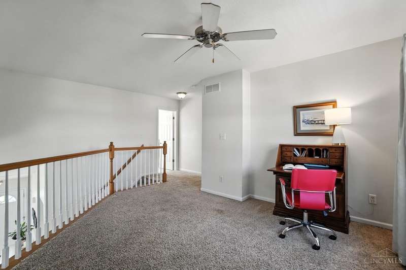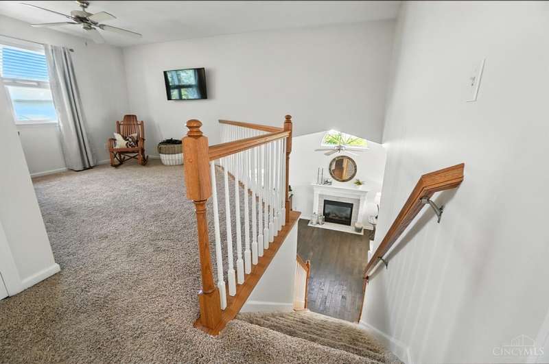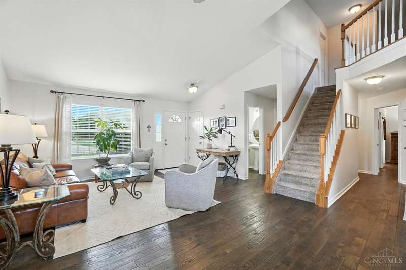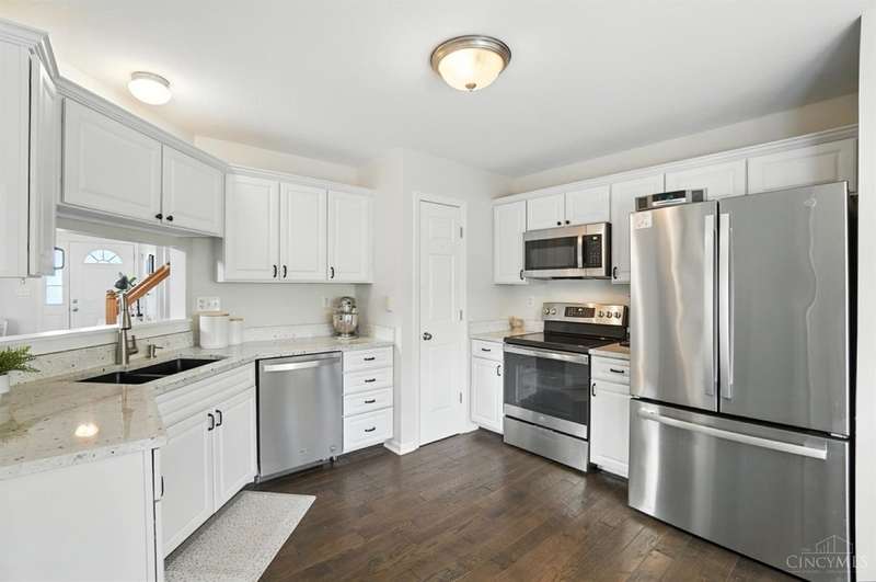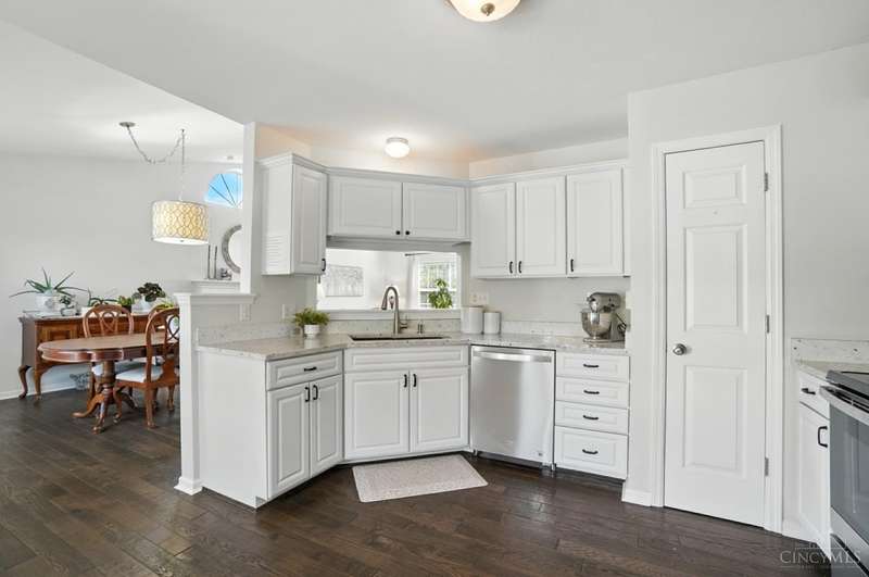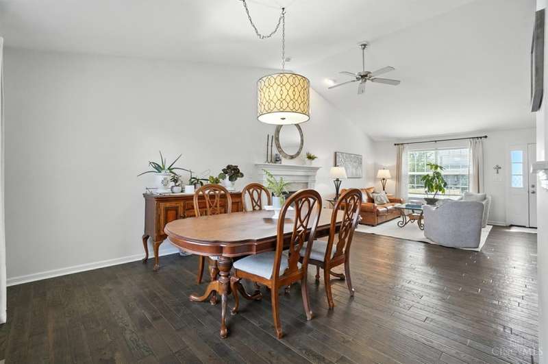 Meticulously cared for and beautifully updated home with 1st floor primary bedroom, updated white kitchen w/ granite countertops and SS appliances. Newer hand scraped hardwood floor throughout 1st floor. Cathedral ceiling and fireplace in living room/dining area. Walk out to a peaceful, private patio and fenced yard with extensive landscaping. Two bedrooms w/ full bath and loft upstairs. Walk to Endeavor Elementary. Lakota Schools - walking trails and ponds in neighborhood. Roof, furnace and a/c all 2022; Kitchen appliances 2020.